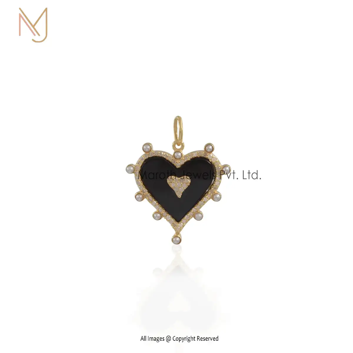 14K Yellow Gold Turquoise & Moissanite & Pearl Heart Pendant Jewelry Supplier