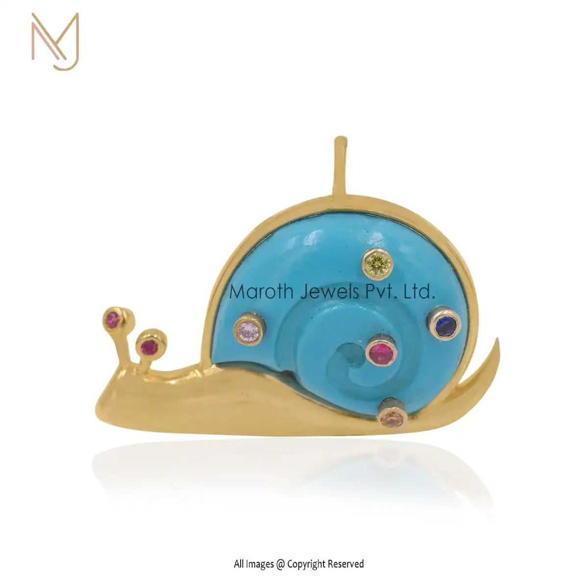 14K Yellow Gold Turquoise & Multi GemStone Snail Pendant Jewelry Manufacturer