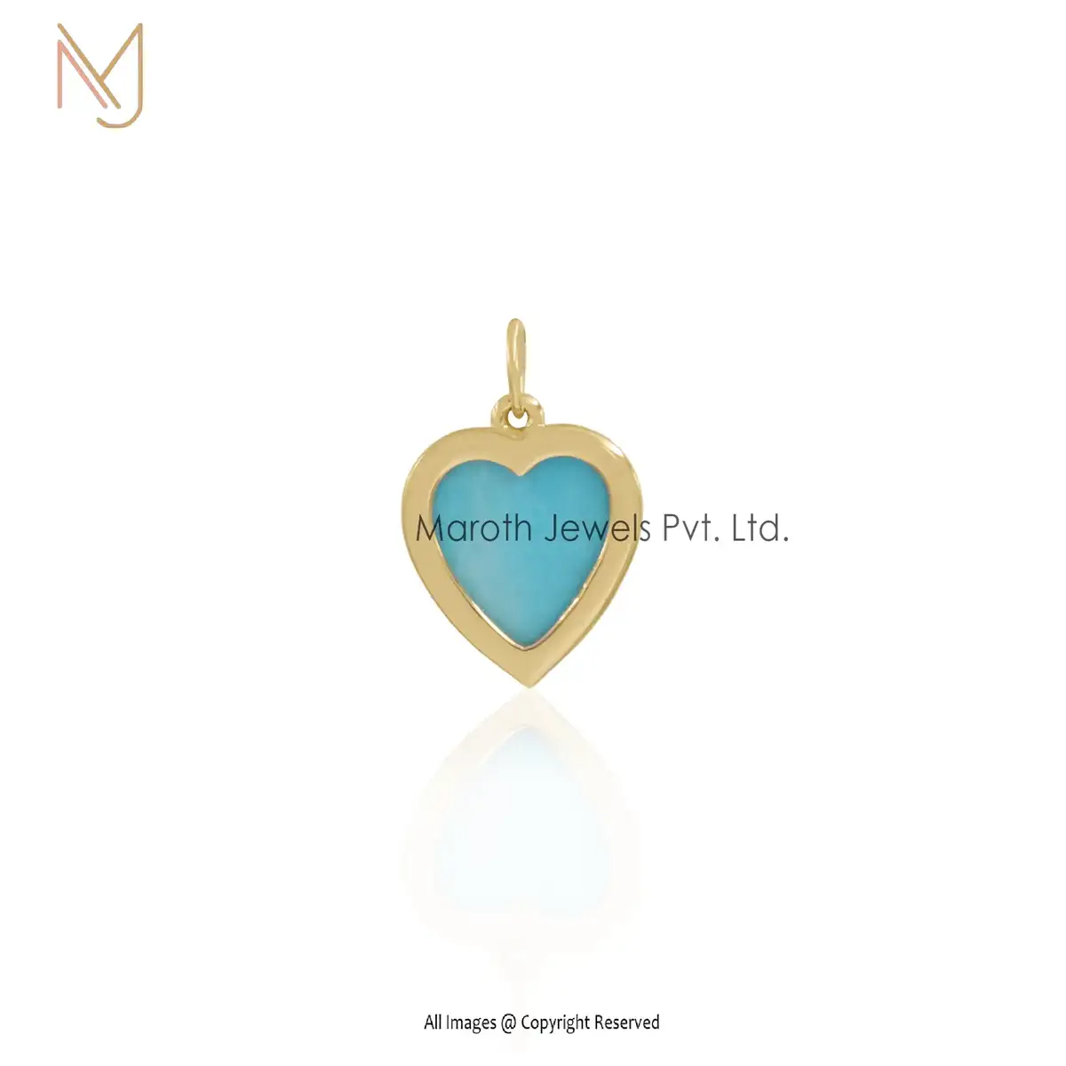 14K Yellow Gold Turquoise & Pave Diamond Heart Pendant Jewelry USA