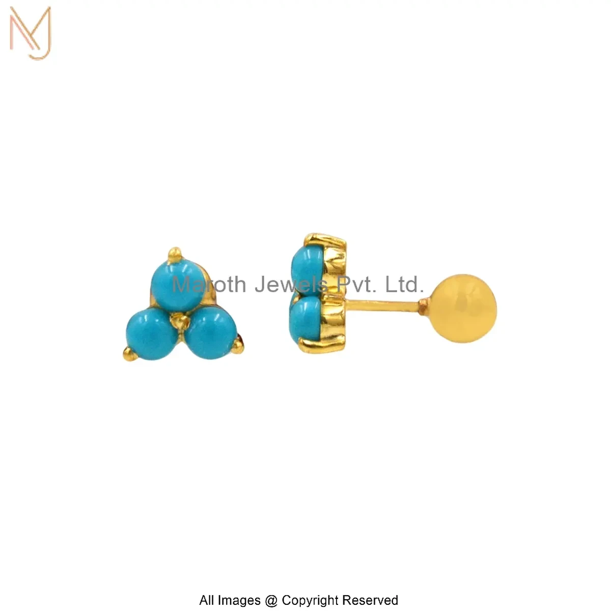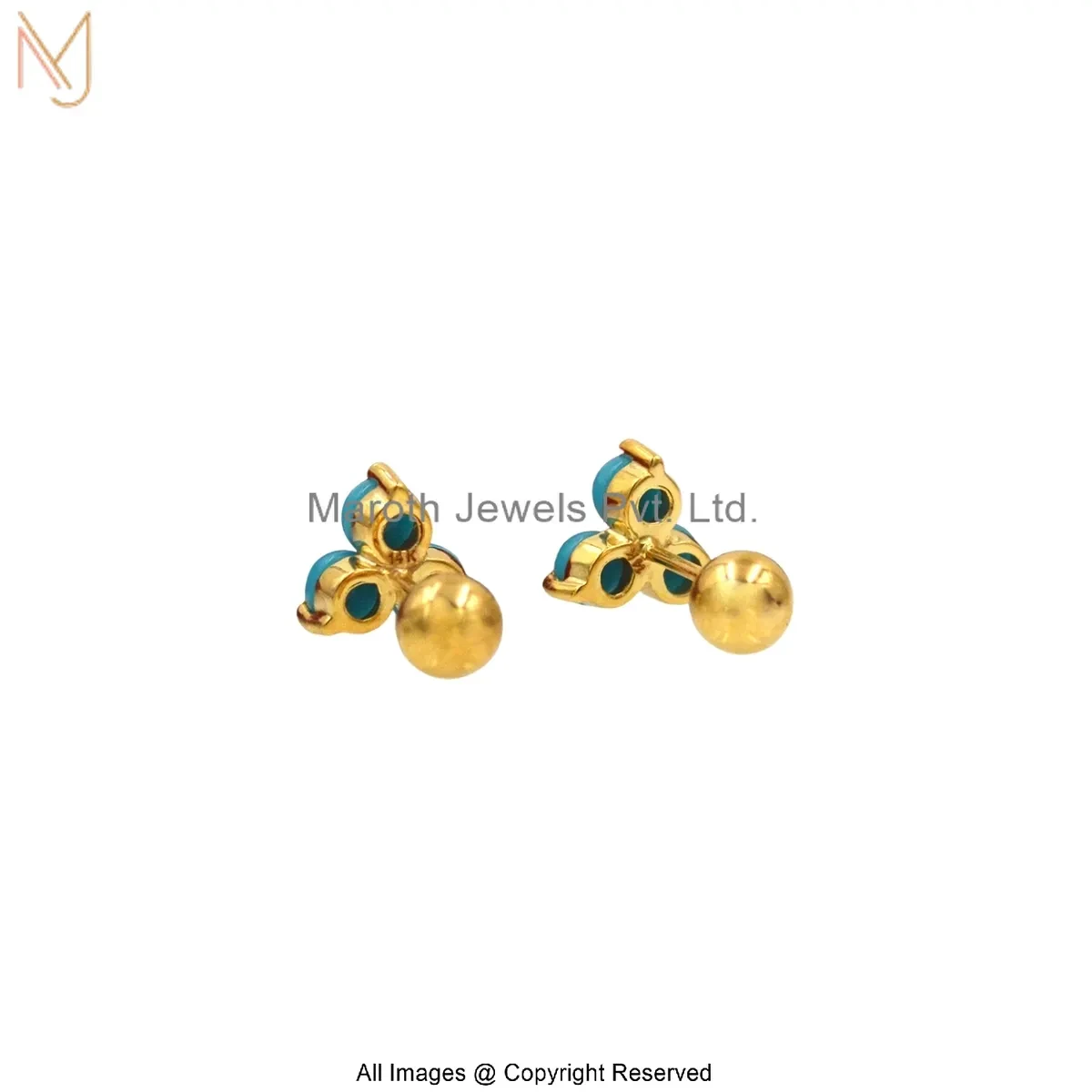14K Yellow Gold Turquoise Trinity Stud Earrings Manufacturer