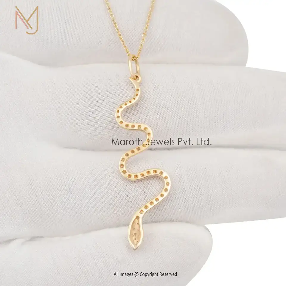 14K Yellow Gold Vermeil Diamond Snake Pendant Custom Jewelry