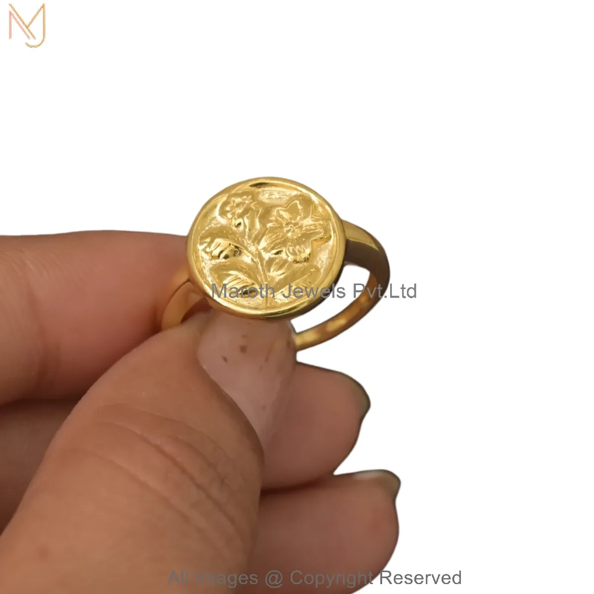 14K Yellow Gold Vintage Rose Engraved Signet Ring Manufacturer