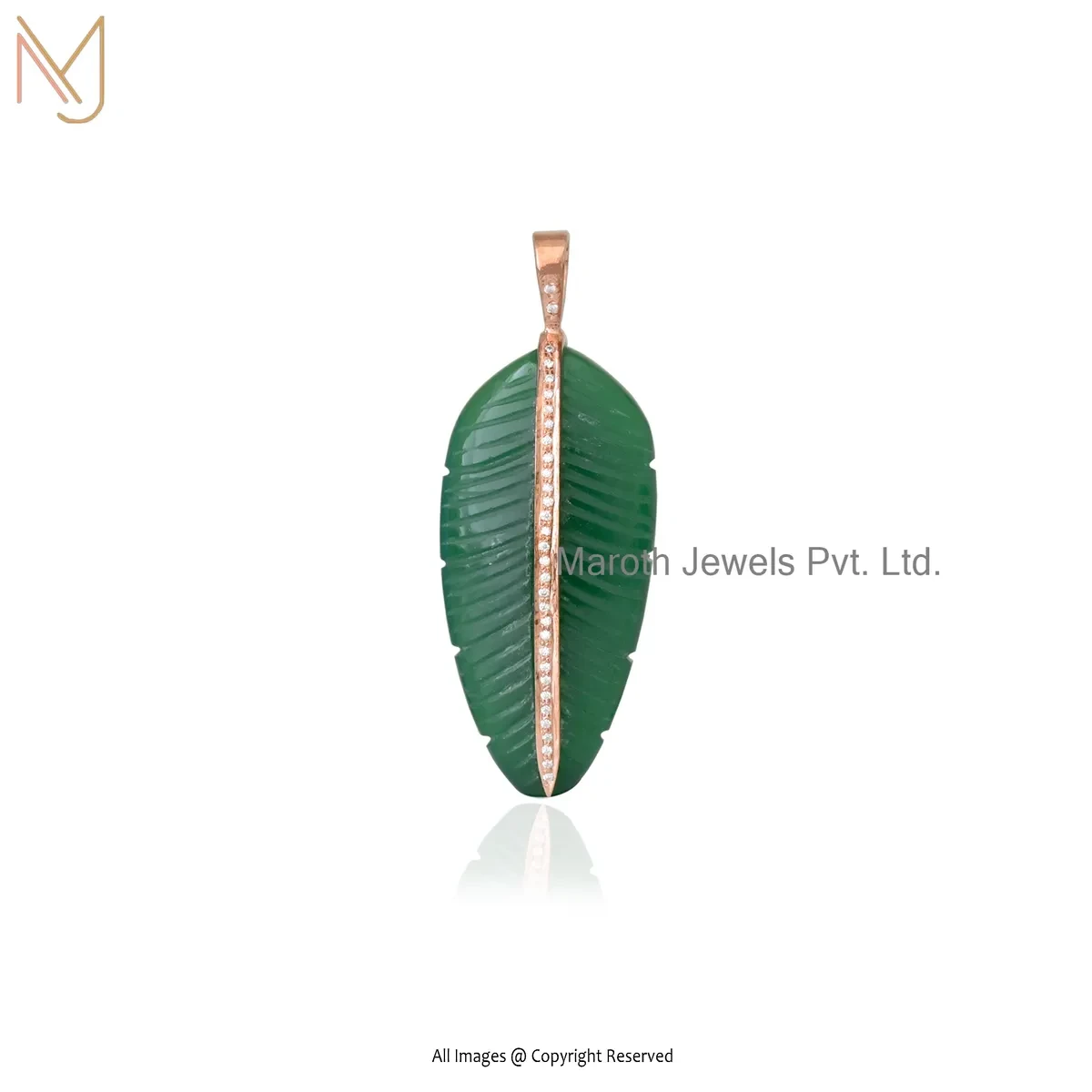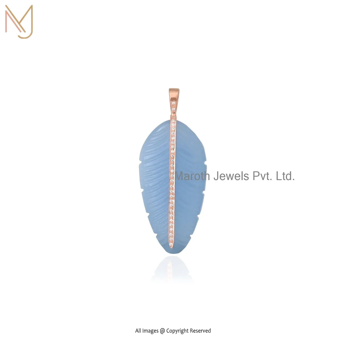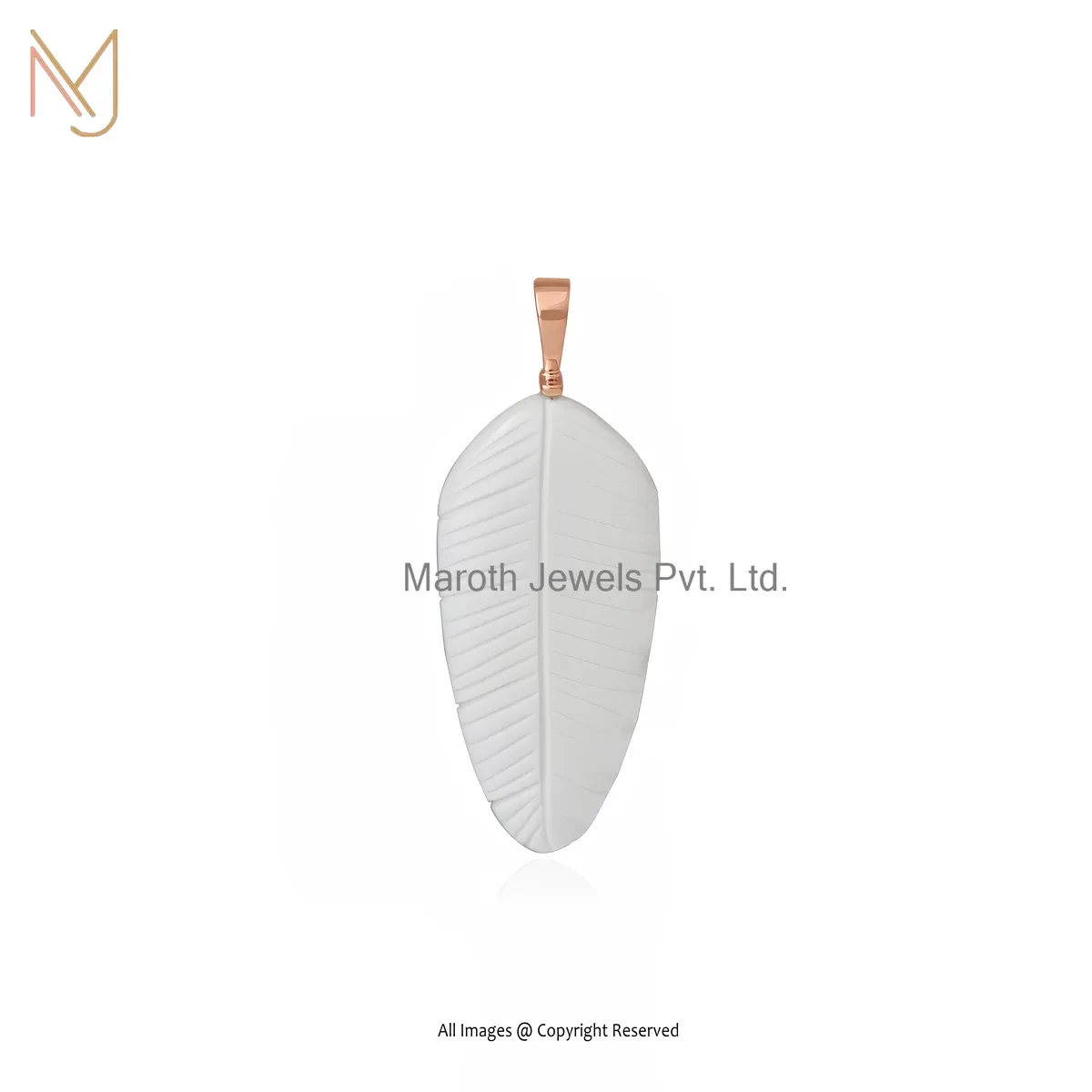 14K Yellow Gold White Agate , Moissanite Feather Pendant Custom Jewelry