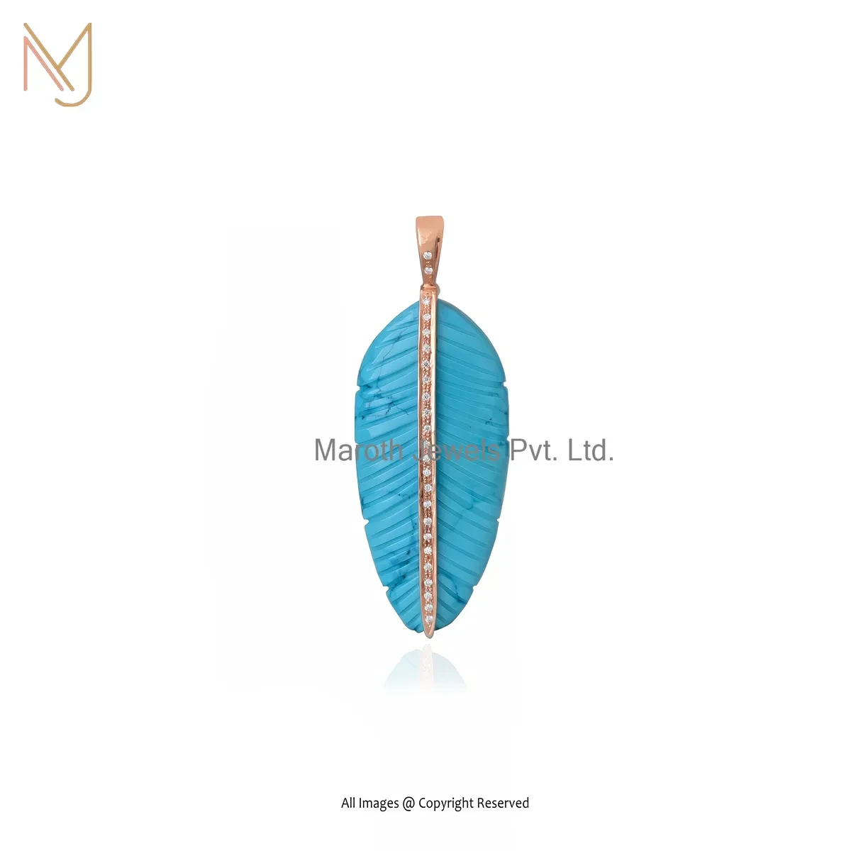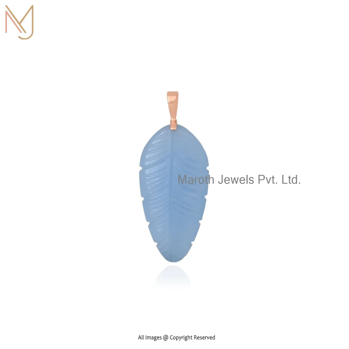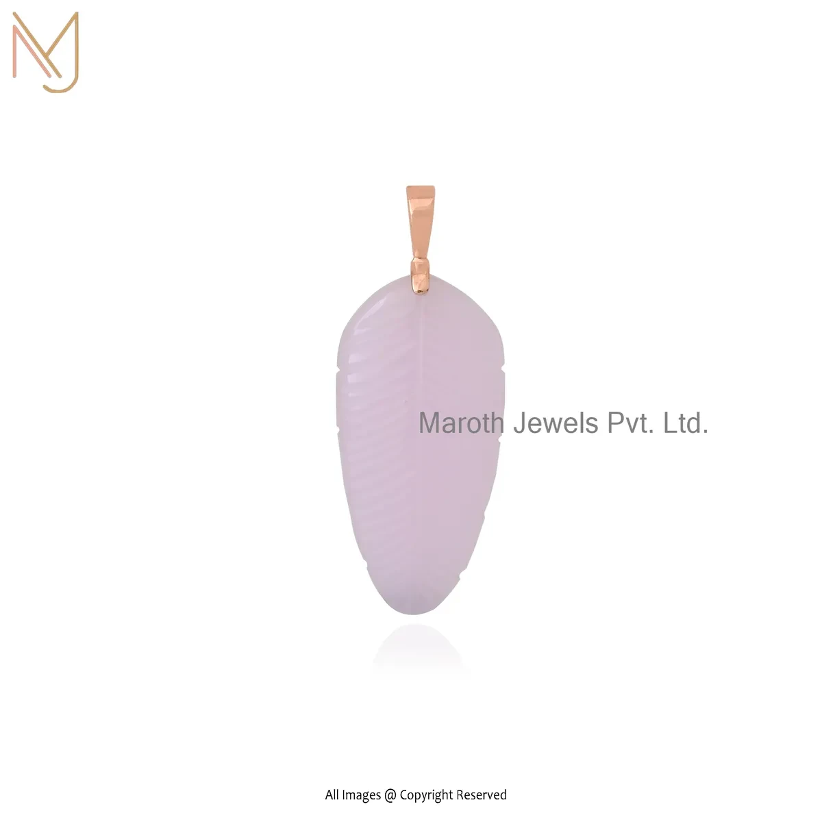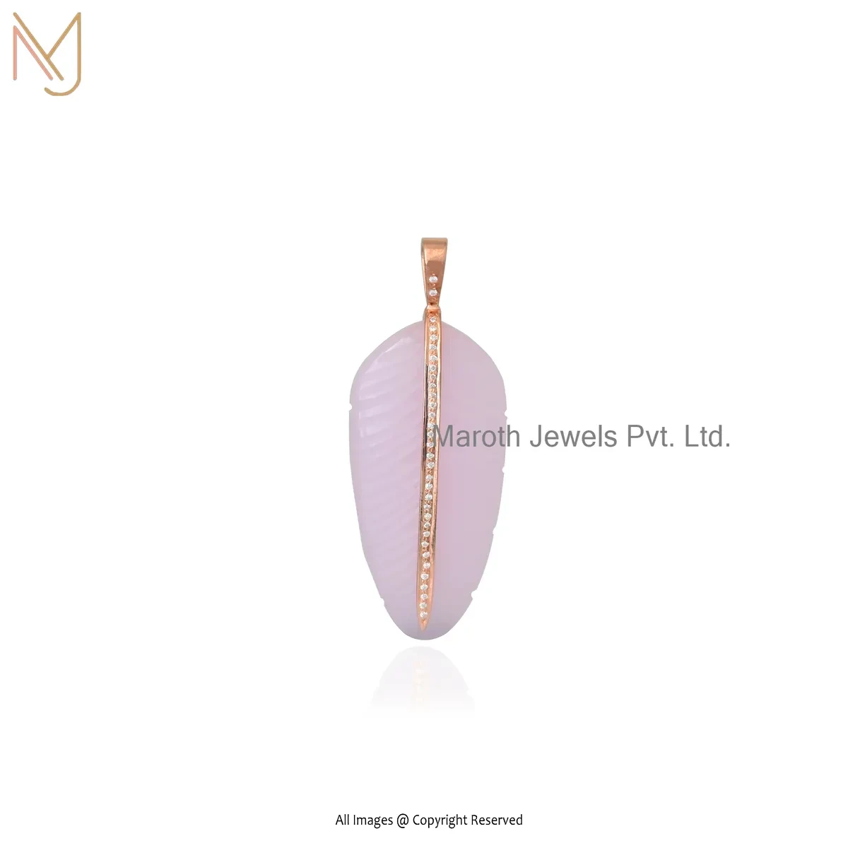 14K Yellow Gold White Agate , Moissanite Feather Pendant Custom Jewelry