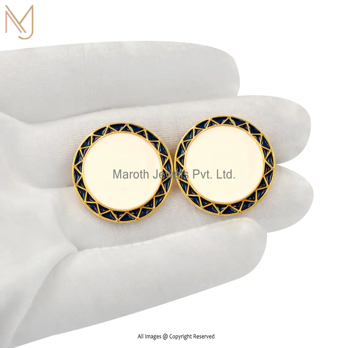 14K Yellow Gold White & Blue Enamel Color Cufflinks Jewelry Manufacturer