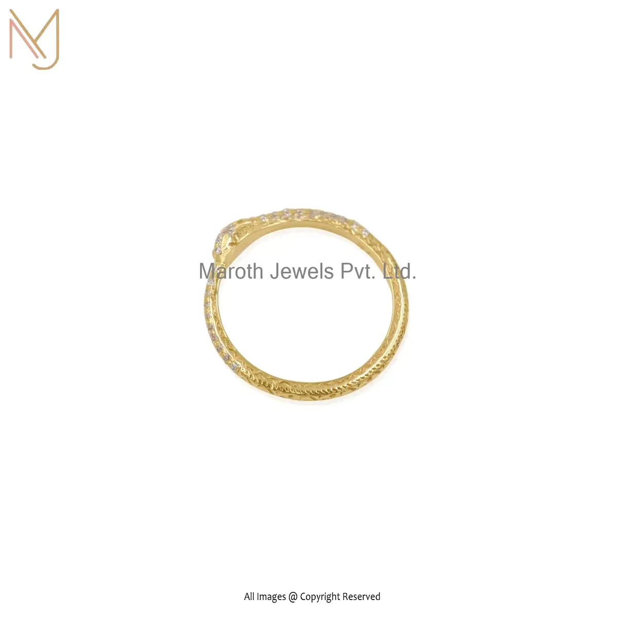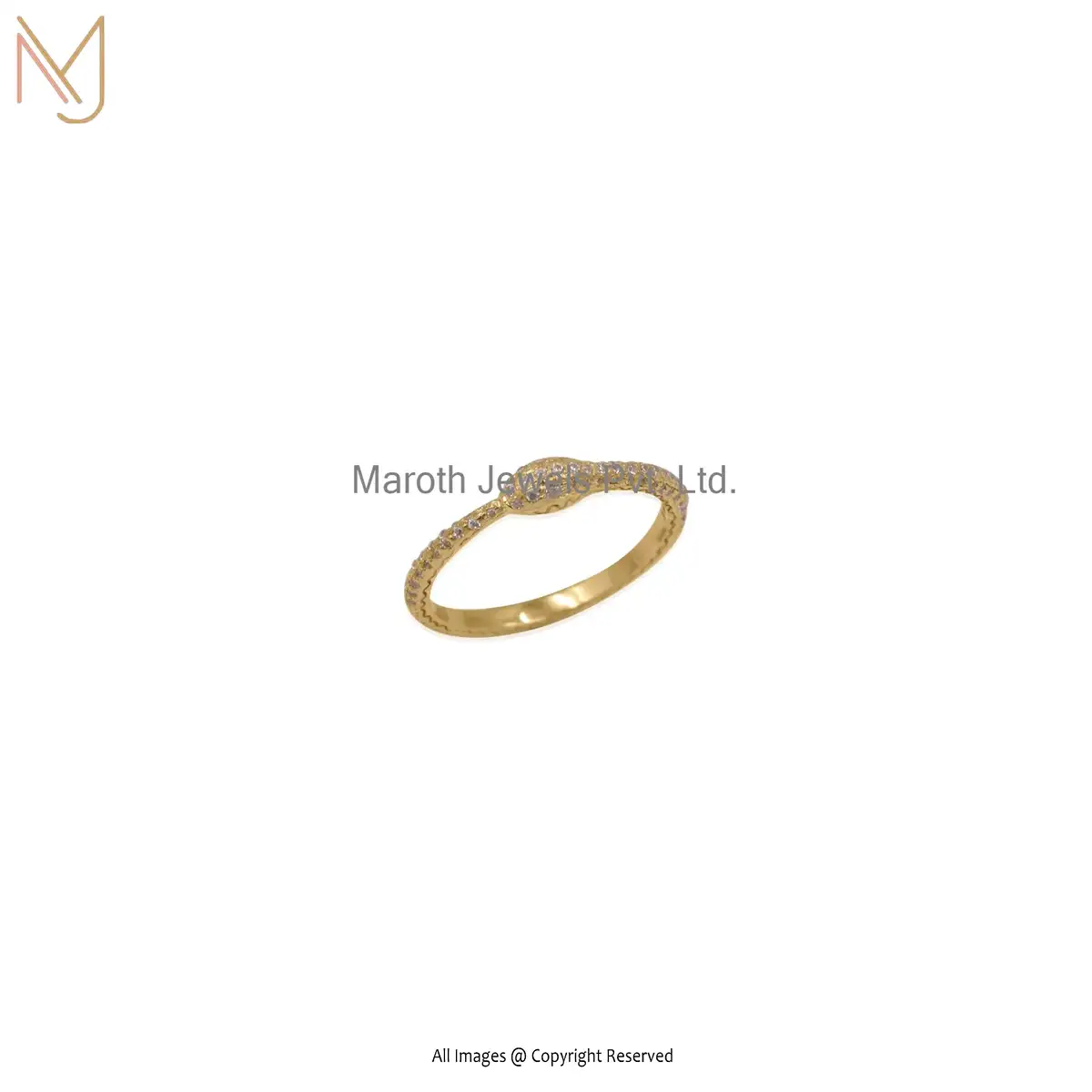 14K Yellow Gold White Cubic Zircon Snake Ring Jewelry Supplier