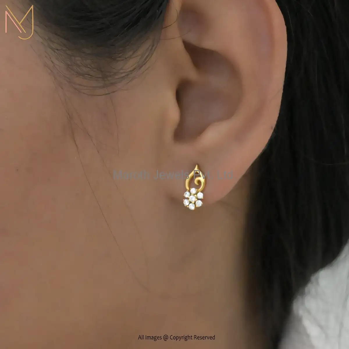 14K Yellow Gold White Cubic Zirconia Earring Manufacturer