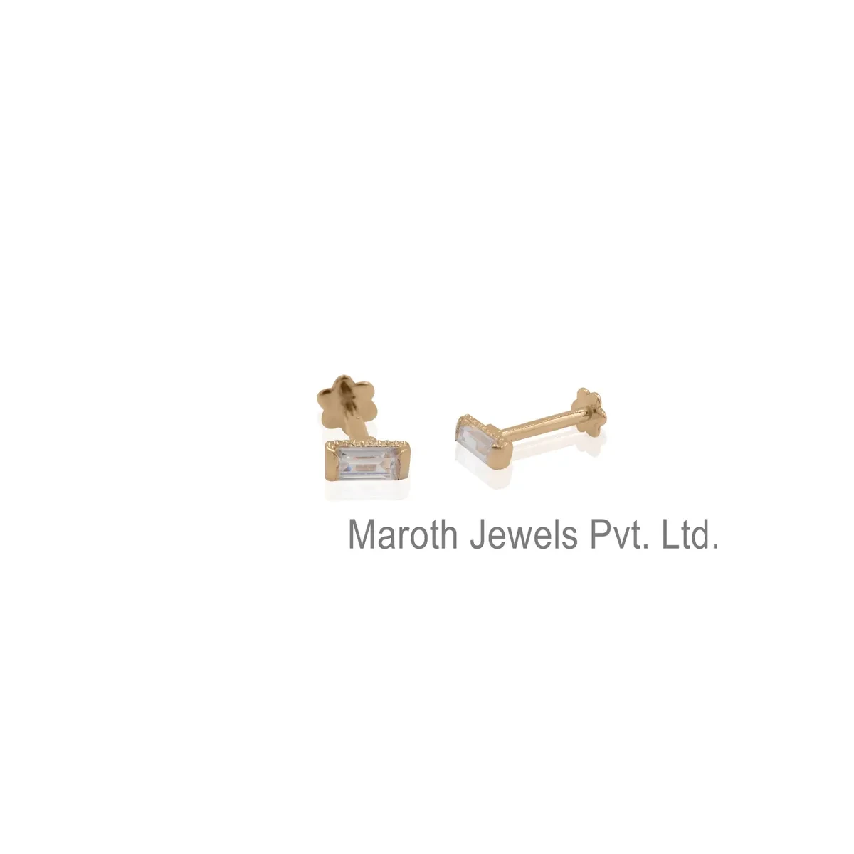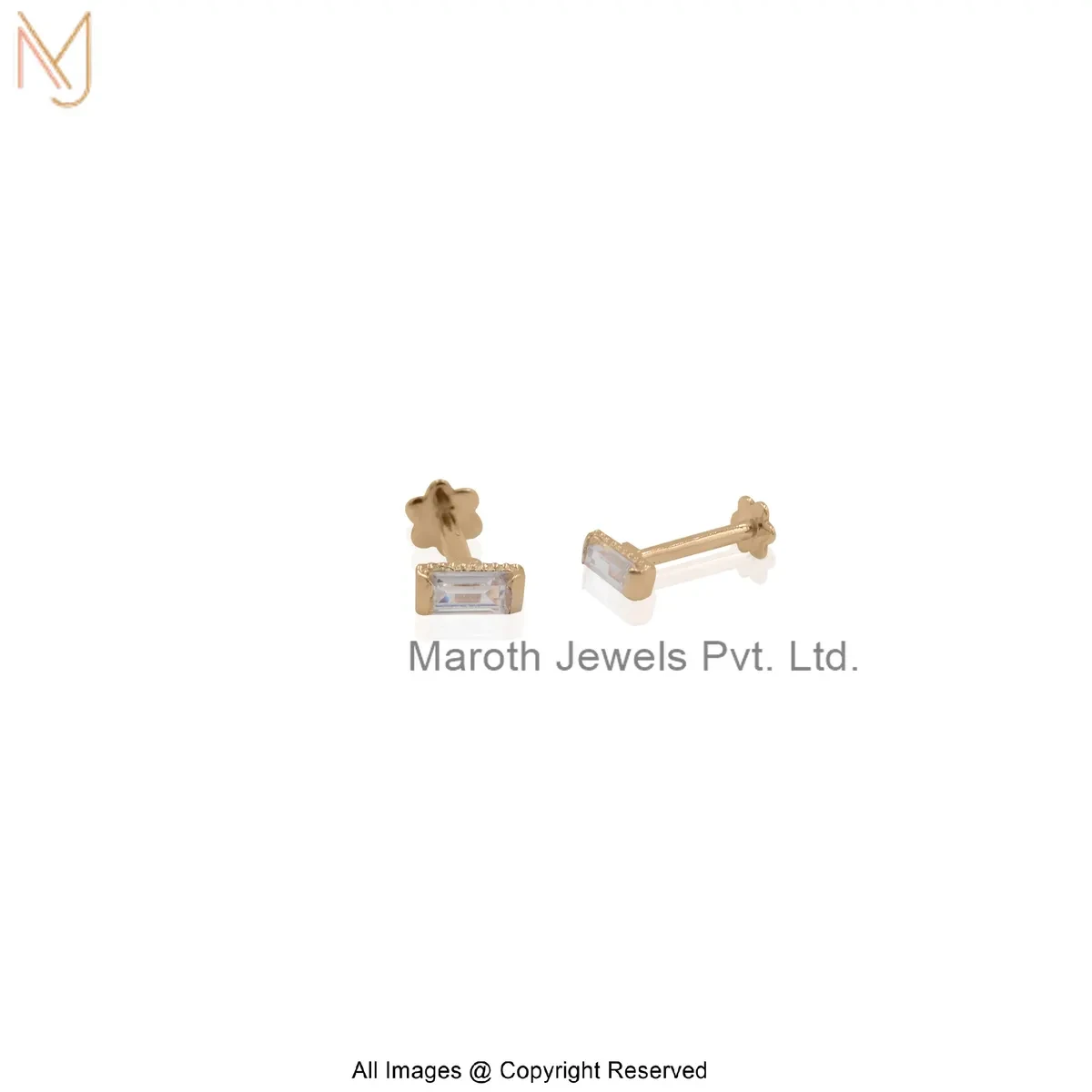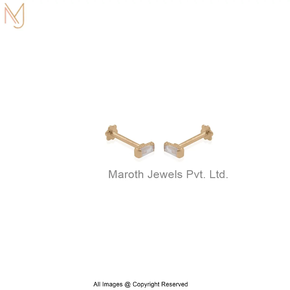 14K Yellow Gold White Topaz Baguette Stud Earring Custom Jewelry