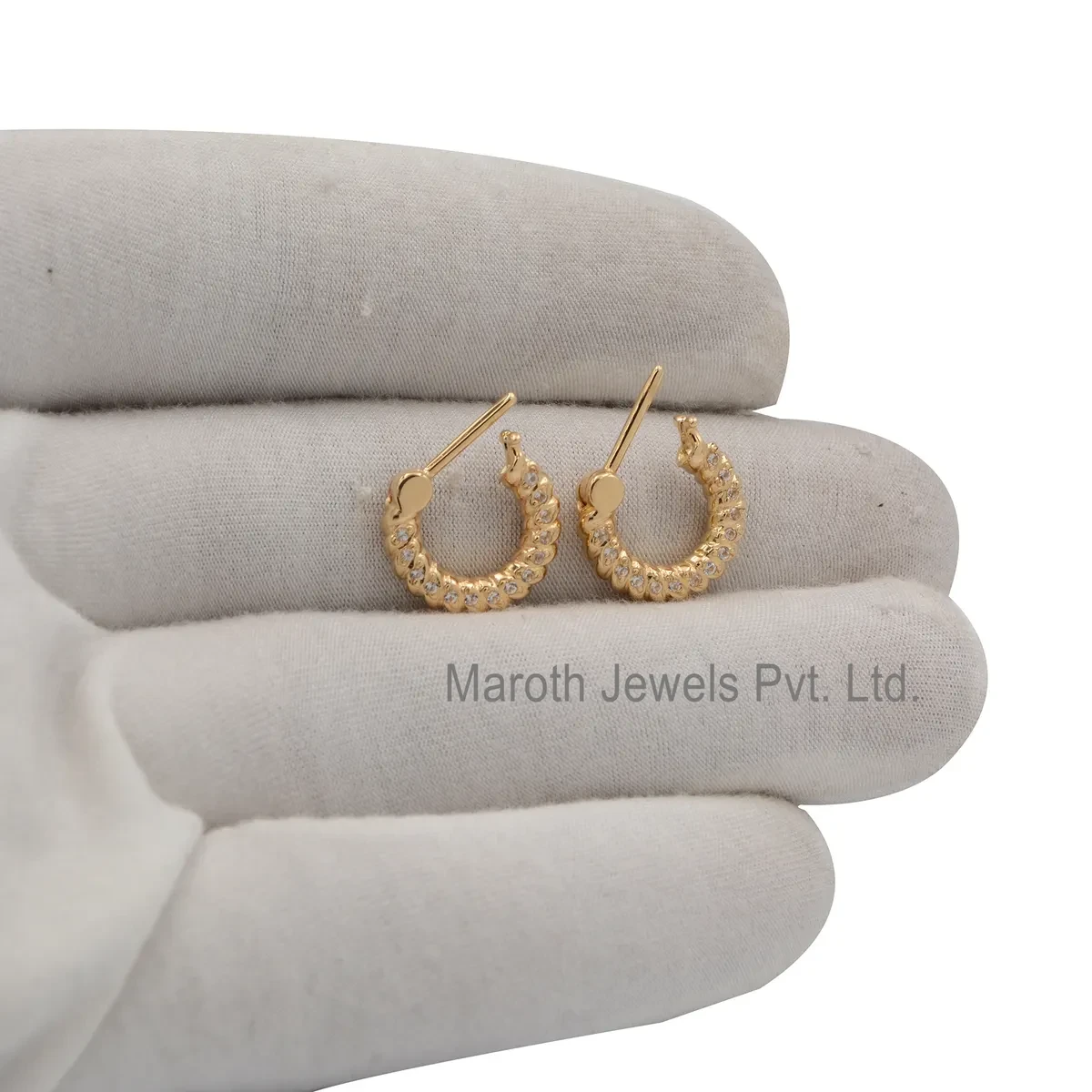 14K Yellow Gold White Topaz Diamond Huggies Earring Manufacturer