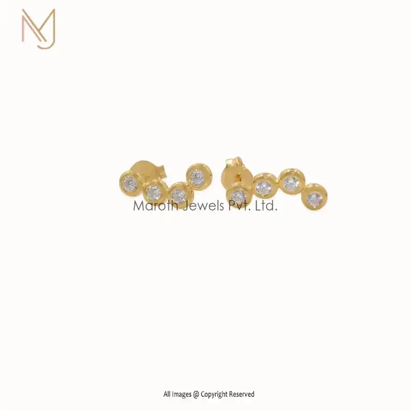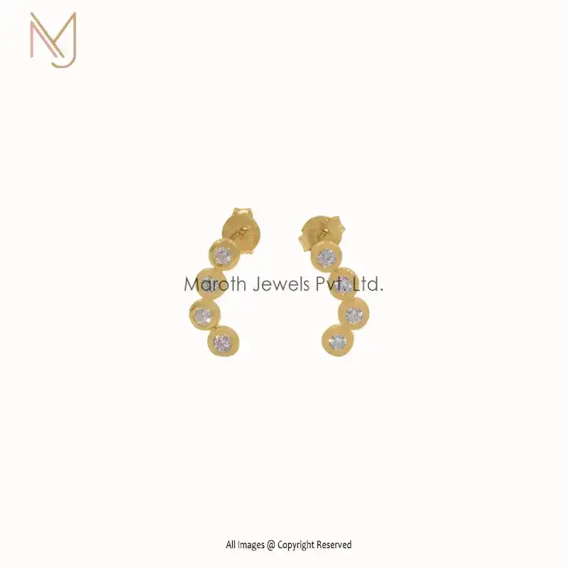 14K Yellow Gold Zigzag CZ Stud Earrings Manufacturer