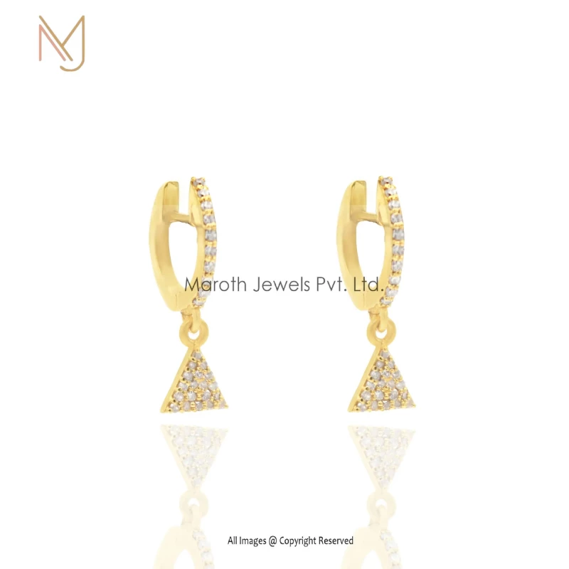 18K Yellow Gold Huggies Earrings Pave Diamond Handmade Jewelry Manufacturer