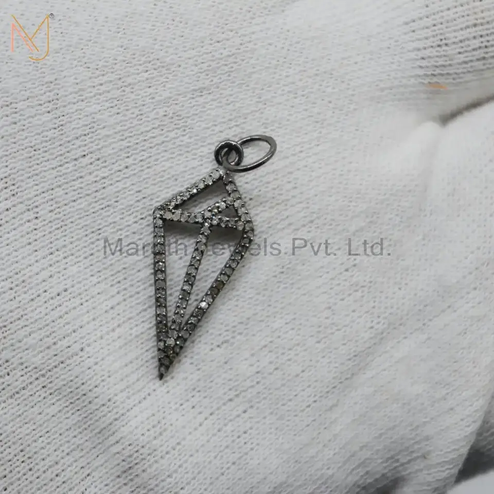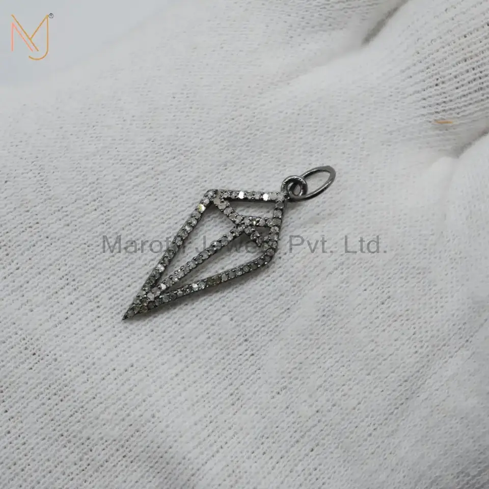 925 Silver Black Rhodium Pave Diamond Charms Pendant Jewelry USA
