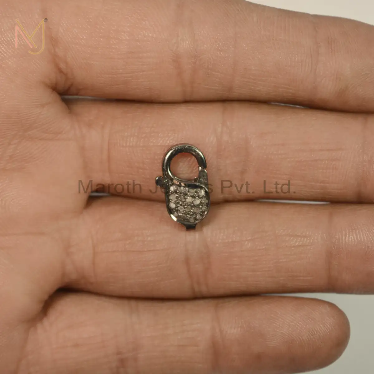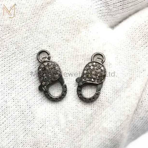 925 Silver Black Rhodium Pave Diamond Lobster Lock Finding Jewelry Manufacturer