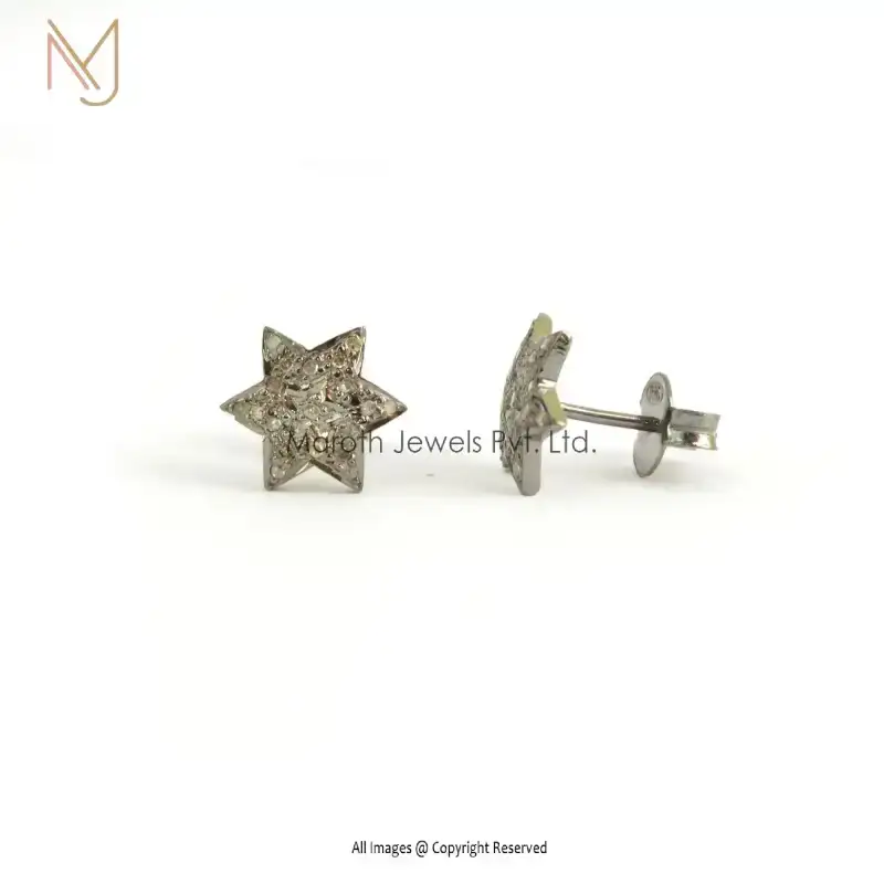 925 Silver Black Rhodium Pave Diamond Star Stud Earring Jewelry Supplier
