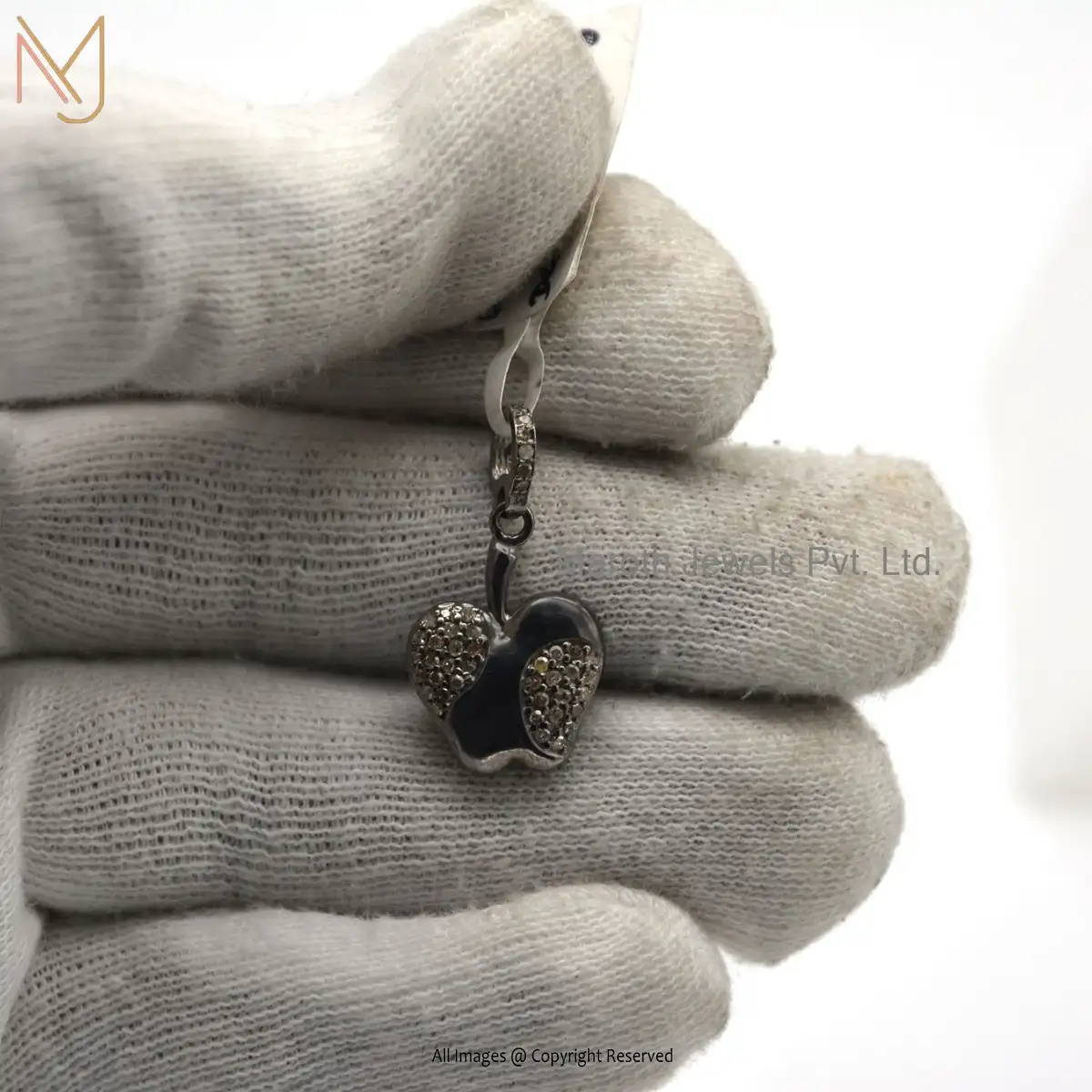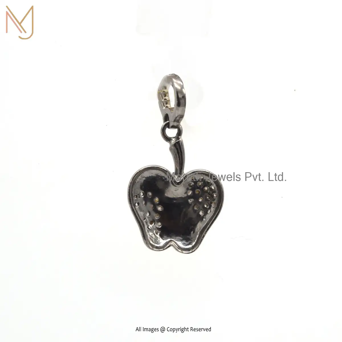 925 Silver Black Rhodium Plated Diamond Apple Shape Pendant Jewelry USA