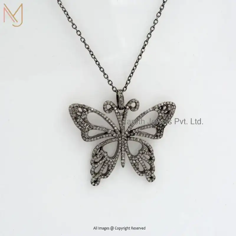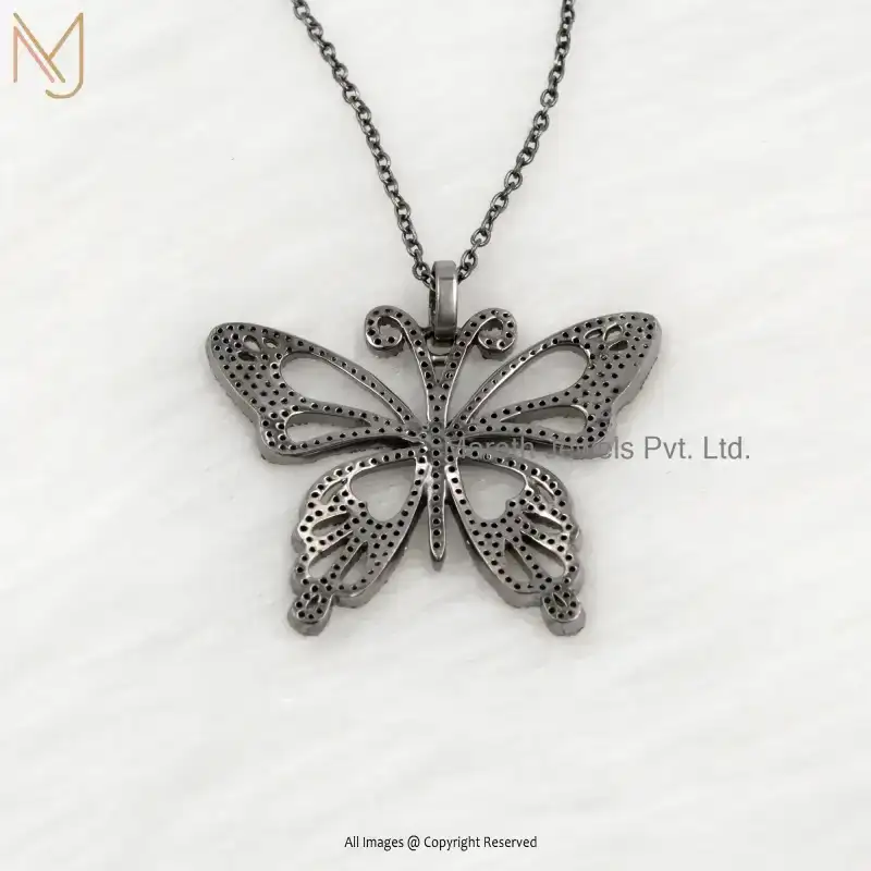 925 Silver Black Rhodium Plated Diamond Butterfly Pendant Custom Jewelry