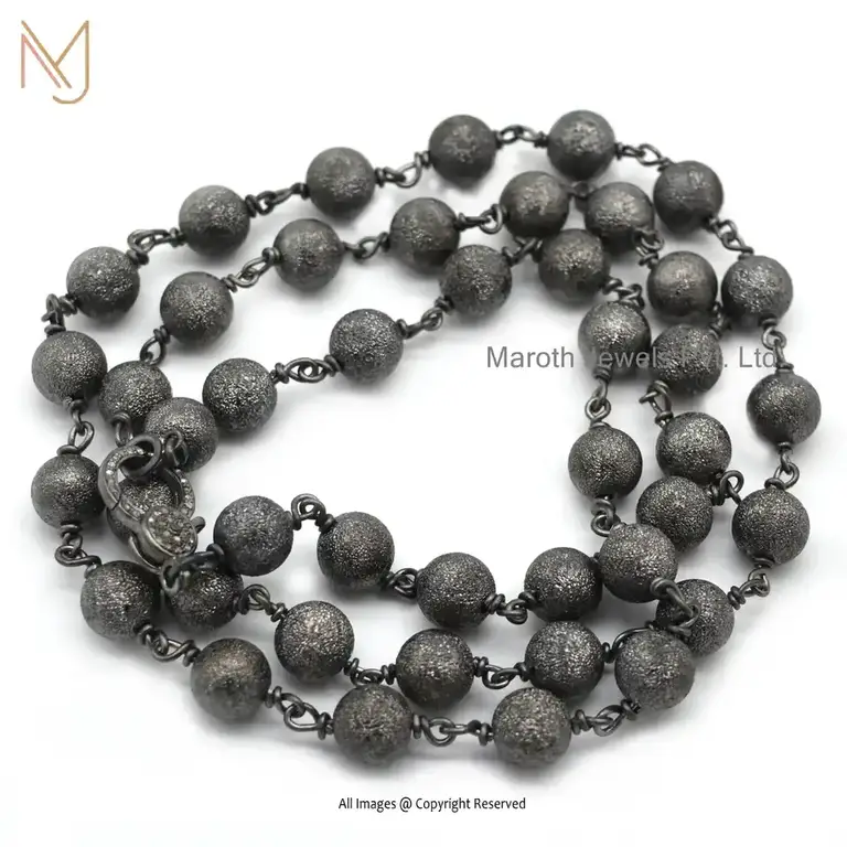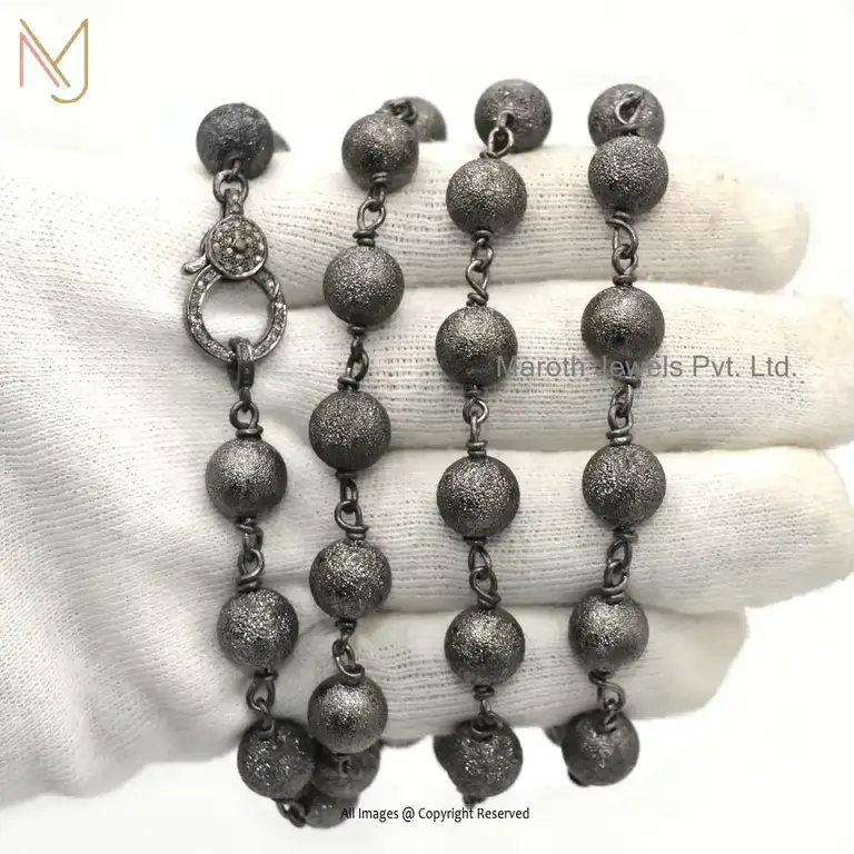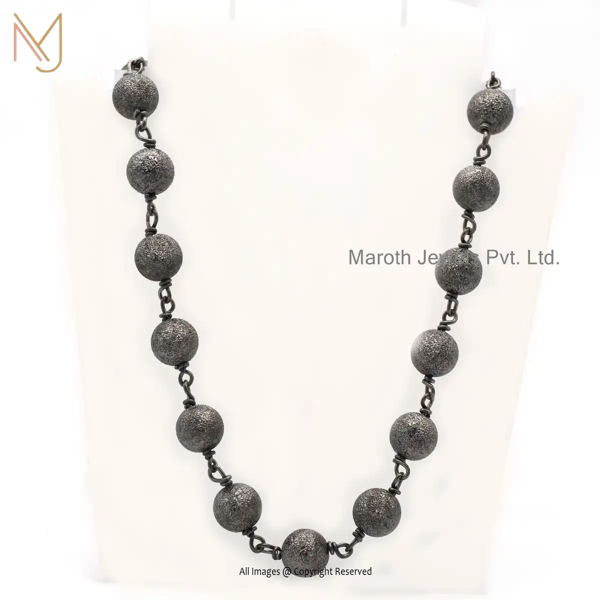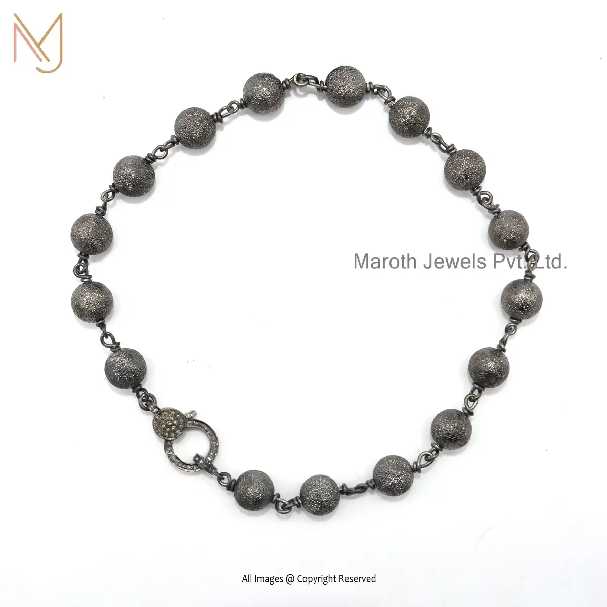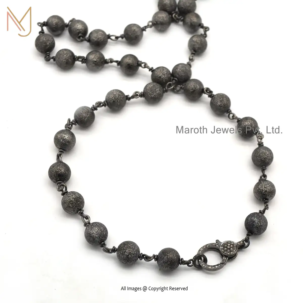 925 Silver Black Rhodium Plated Diamond Lobster Lock Beads Balls Necklace Manufacturer