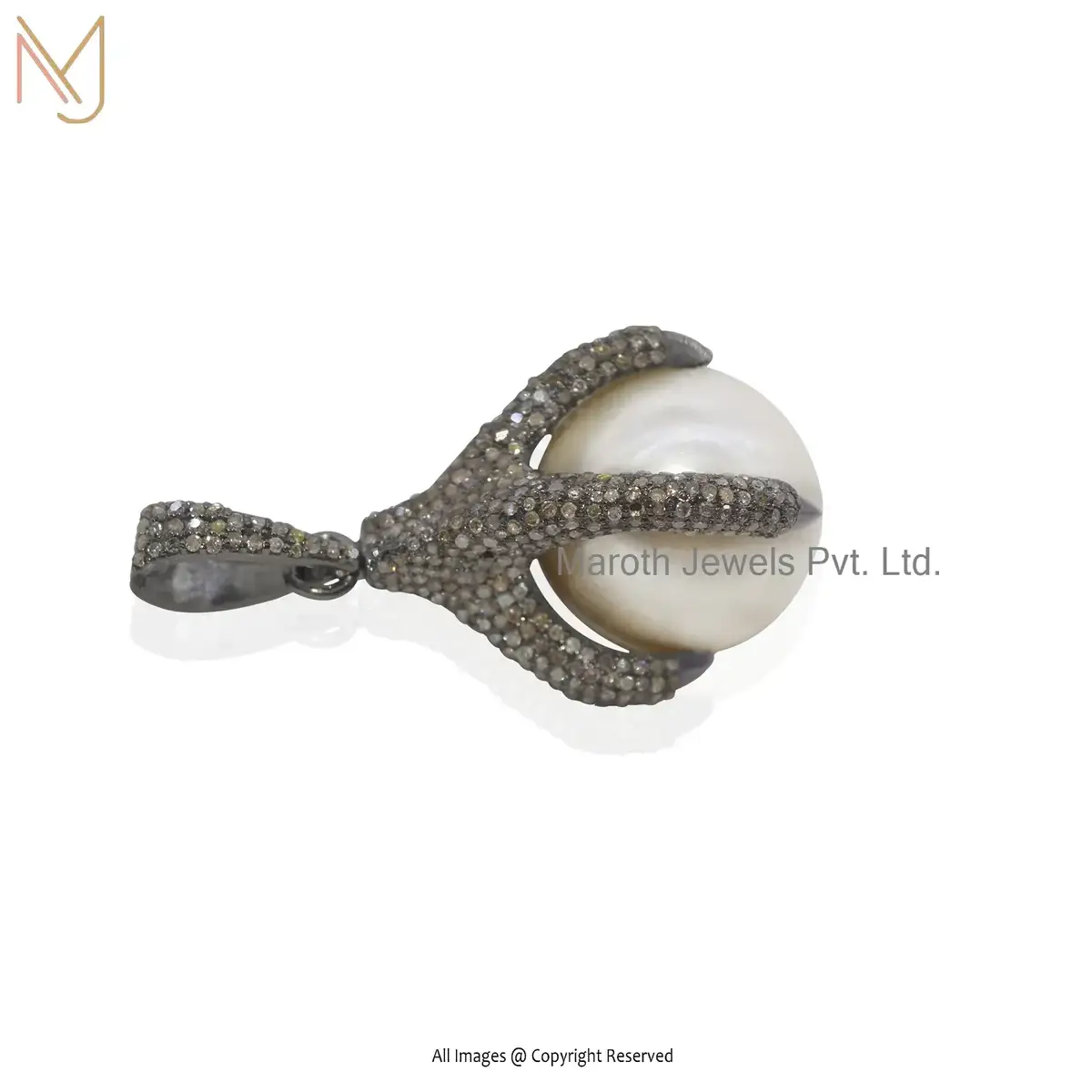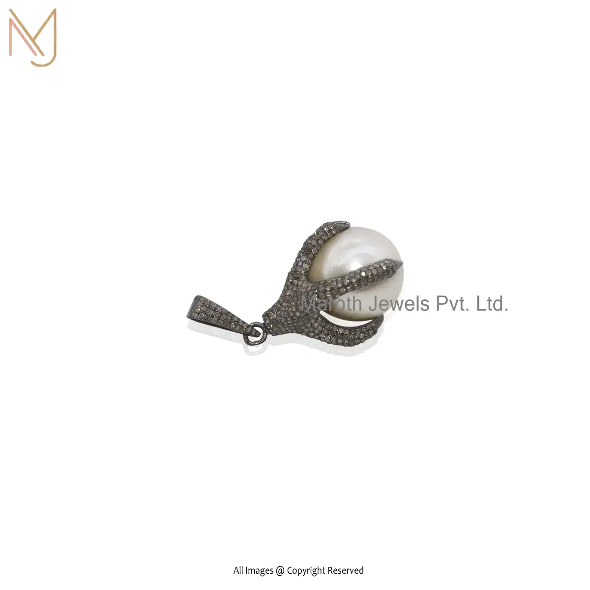 925 Silver Black Rhodium Plated Diamond & Pearl Gemstone Pendant Jewelry Suppiler