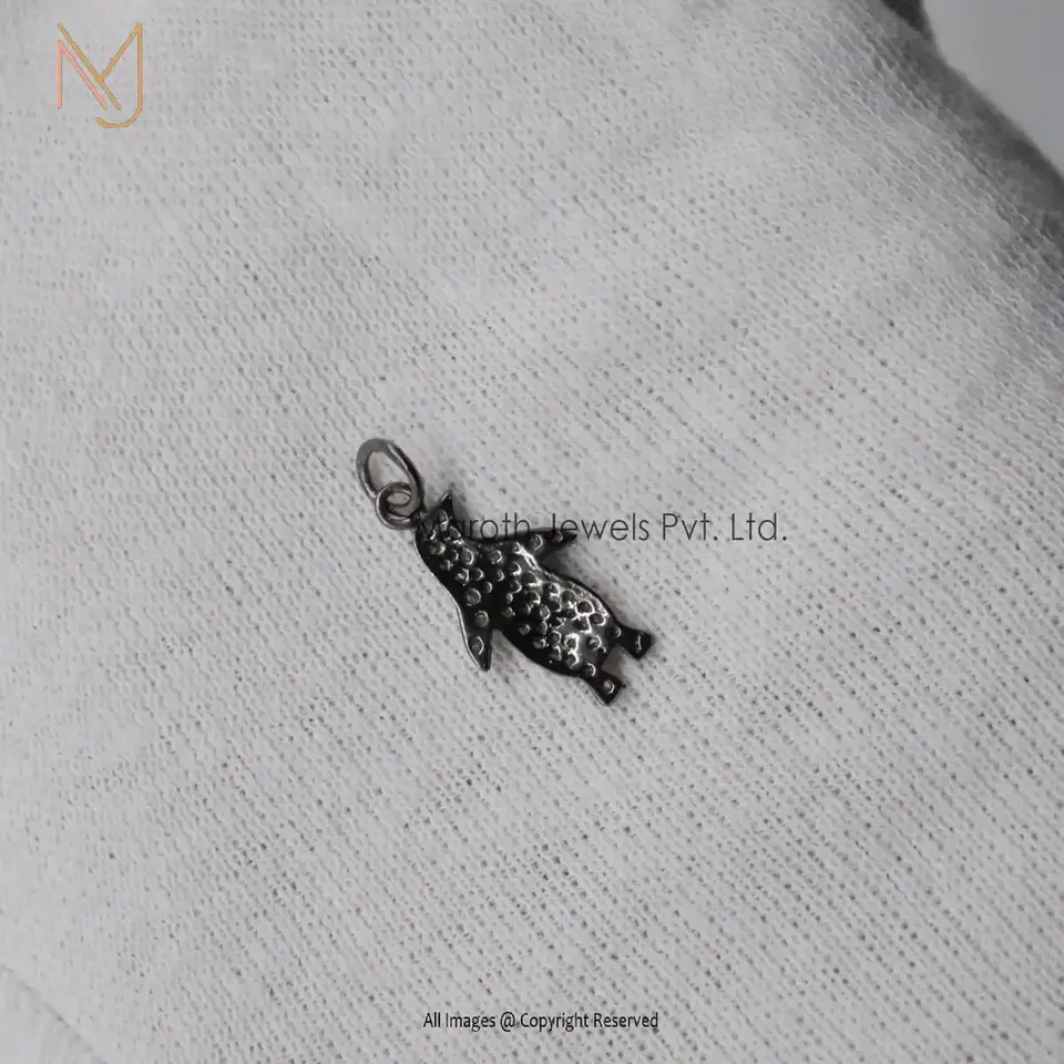 925 Silver Black Rhodium Plated Pave Diamond Animal Pendant Manufacturer