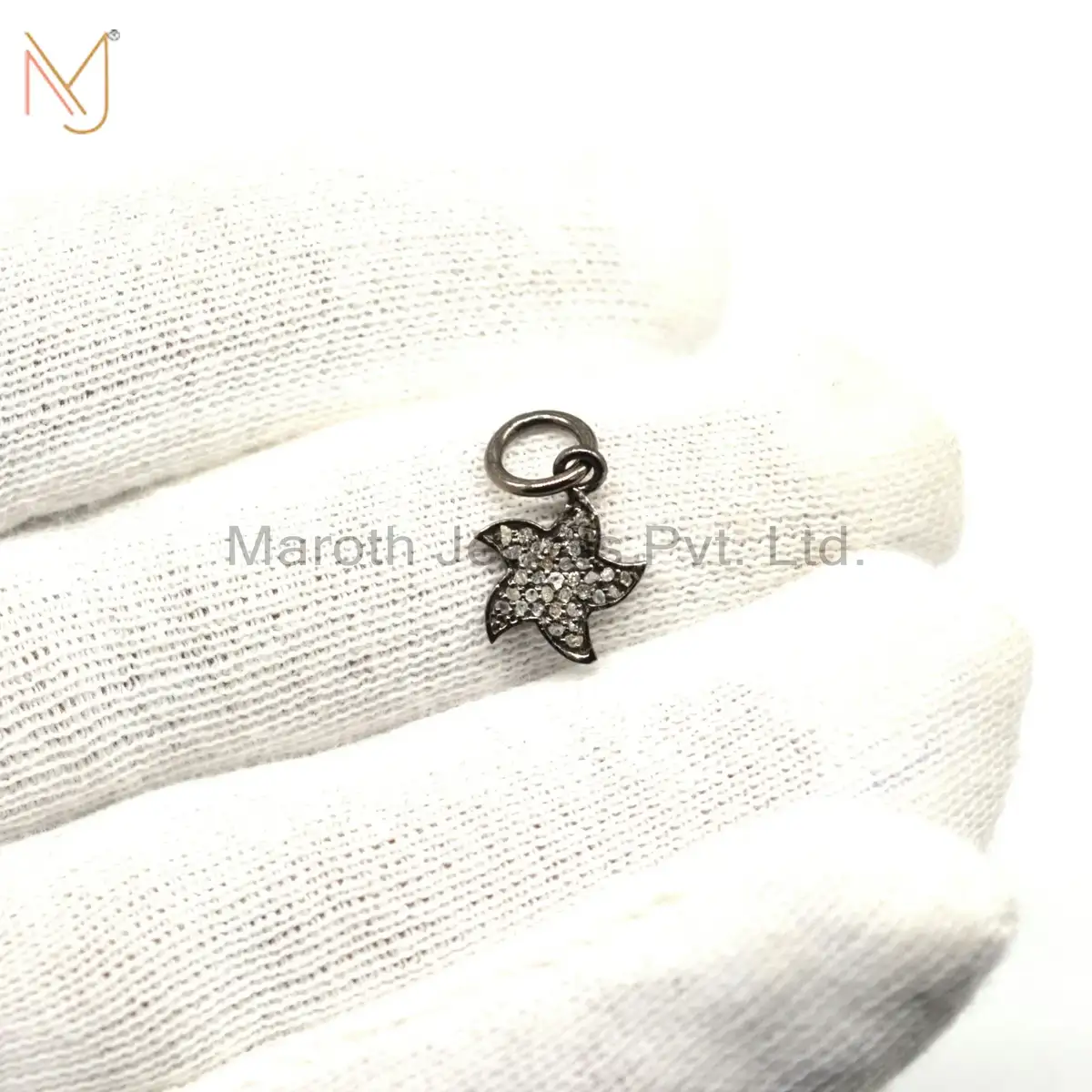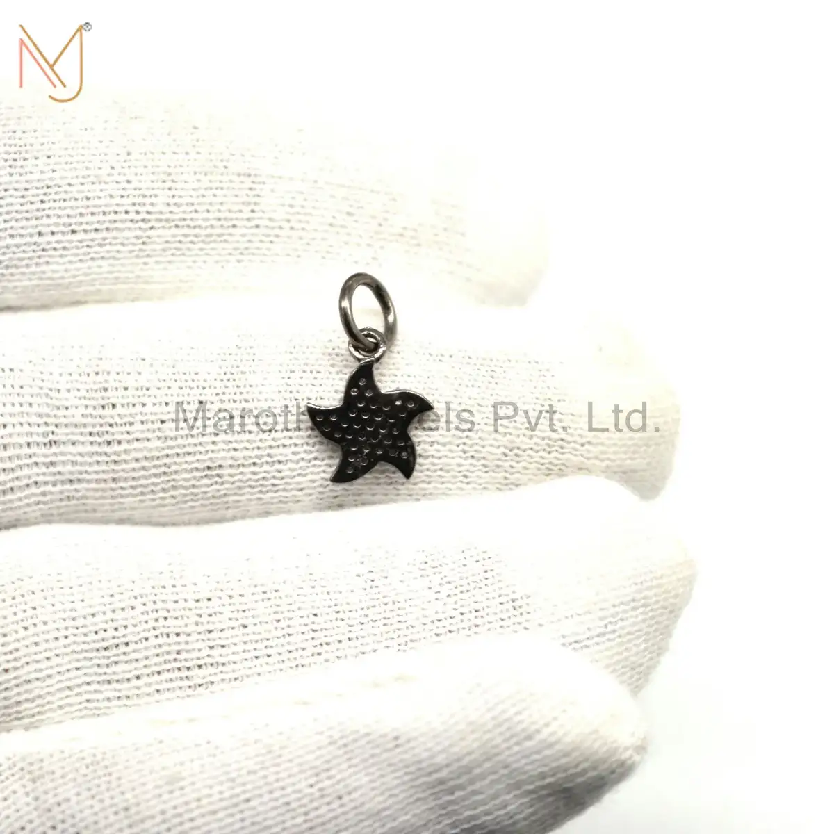 925 Silver Black Rhodium Plated Pave Diamond Charms Pendant Jewelry Supplier