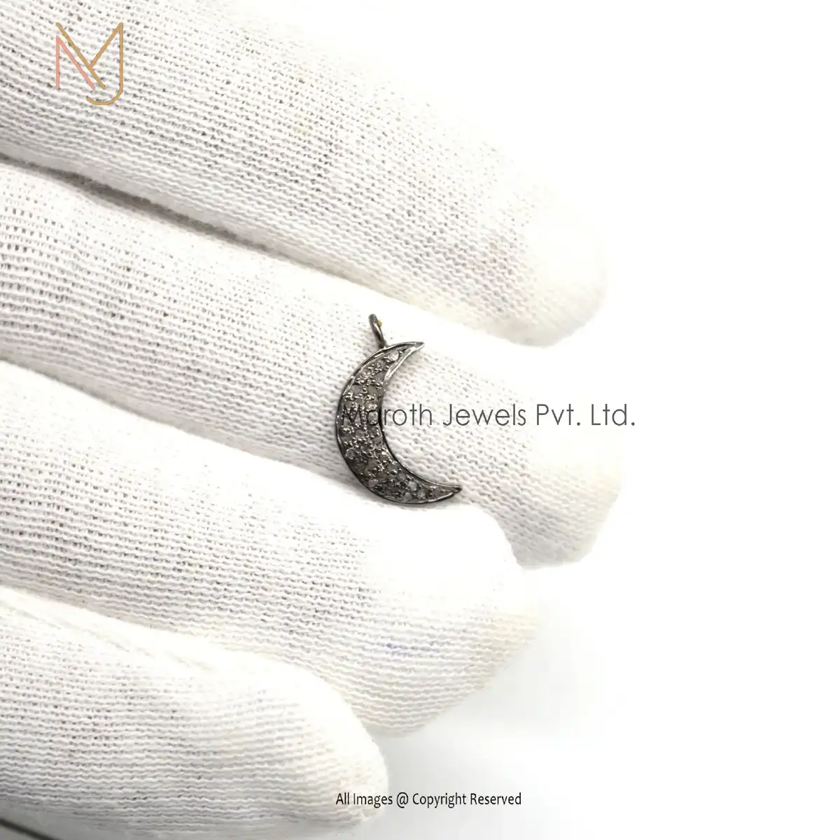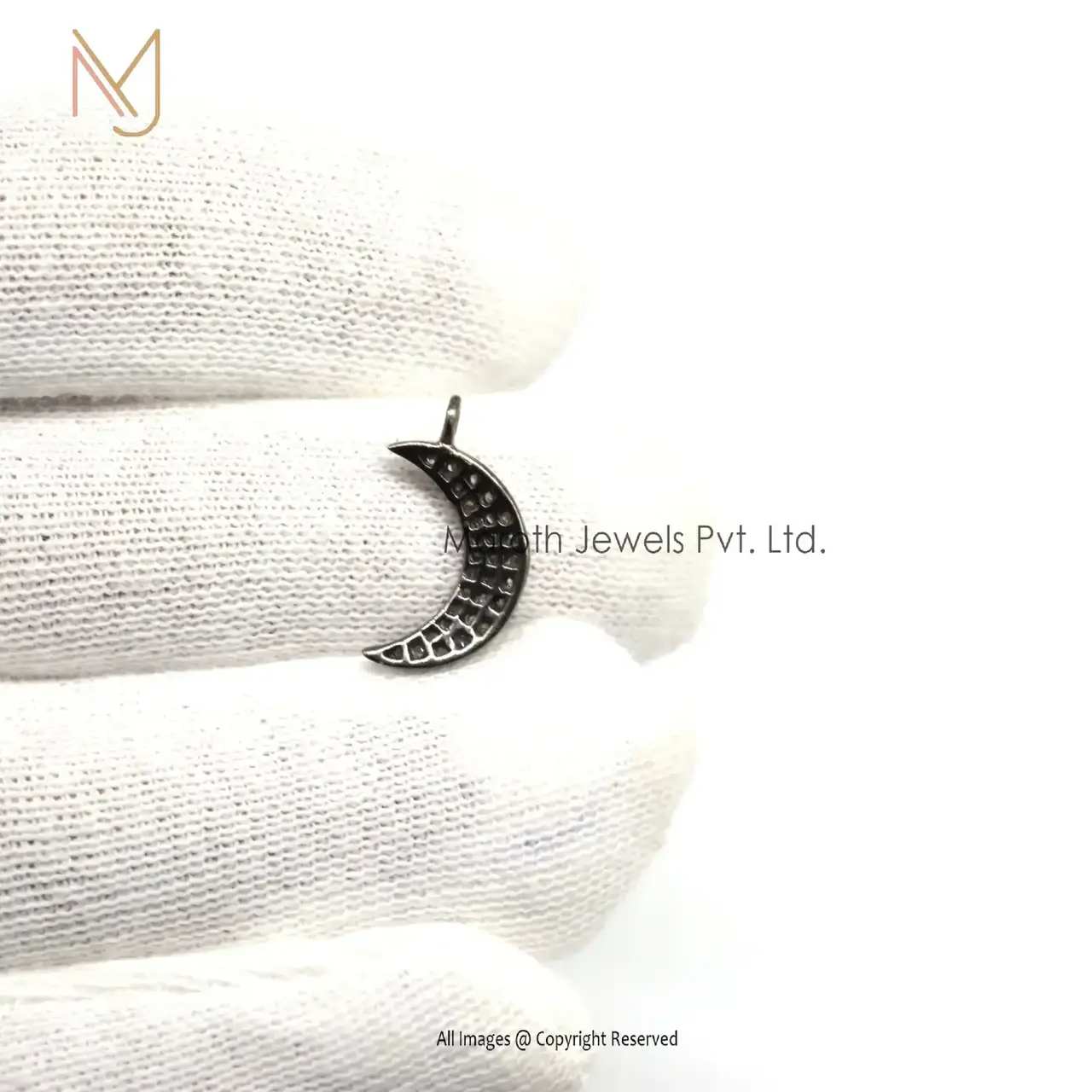 925 Silver Black Rhodium Plated Pave Diamond Charms Pendant Custom Jewelry