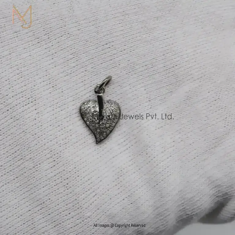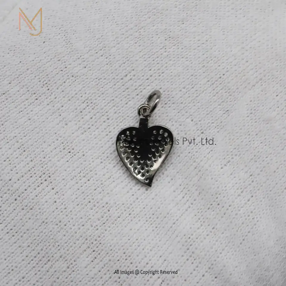 925 Silver Black Rhodium Plated Pave Diamond Heart Pendant Jewelry Supplier