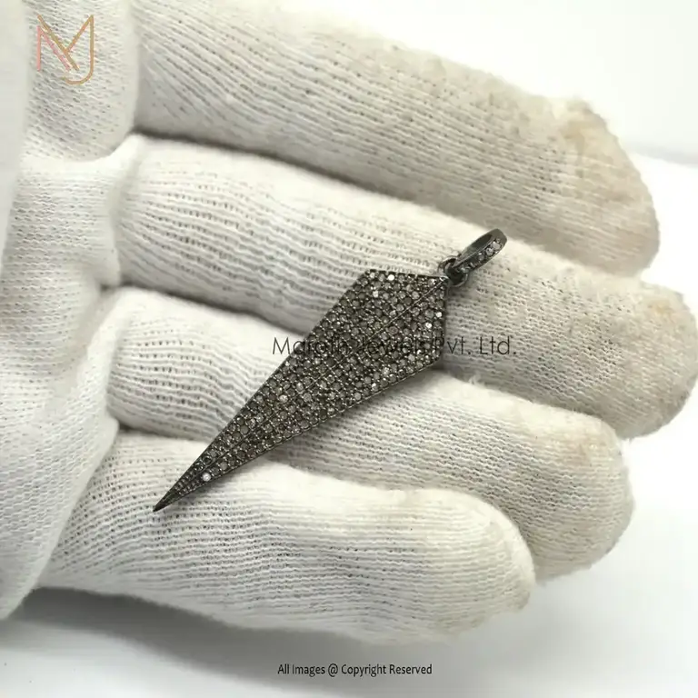 925 Silver Black Rhodium Plated Pave Diamond Charms Pendant Jewelry Manufacturer'