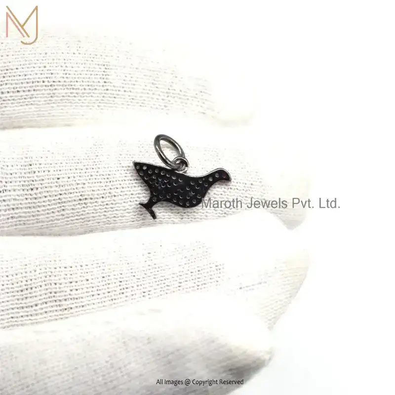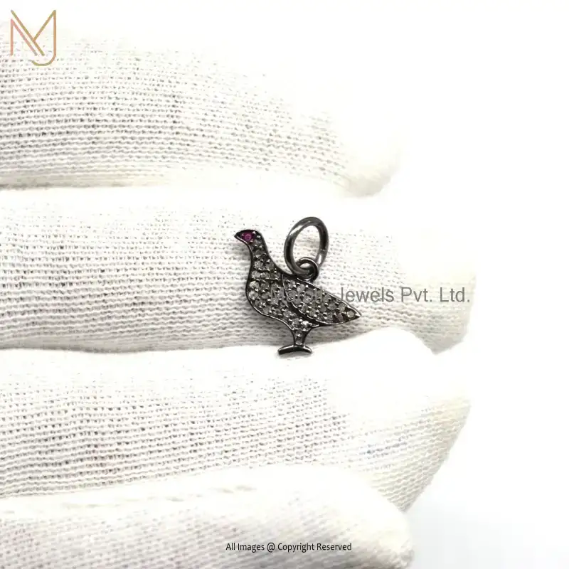 925 Silver Black Rhodium Plated Pave Diamond Ruby Gemstone Charms Pendant Jewelry Supplier