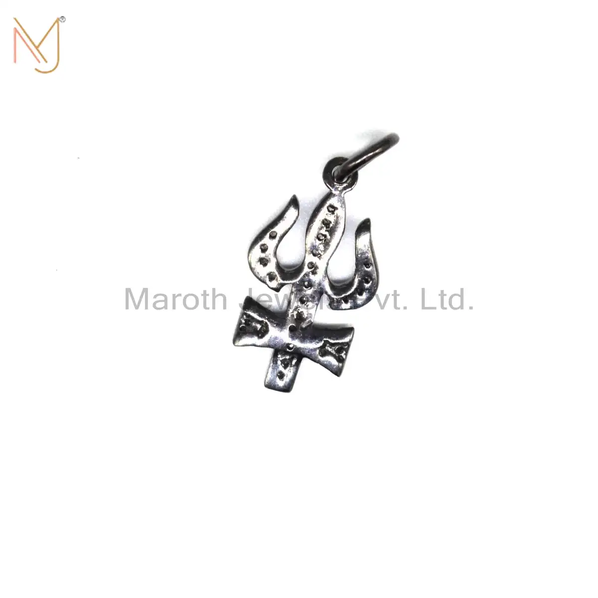 925 Silver Black Rhodium Plated Pave Diamond trishul Pendant Jewelry Supplier