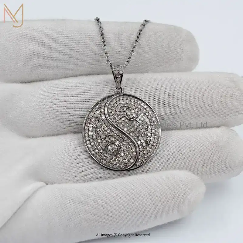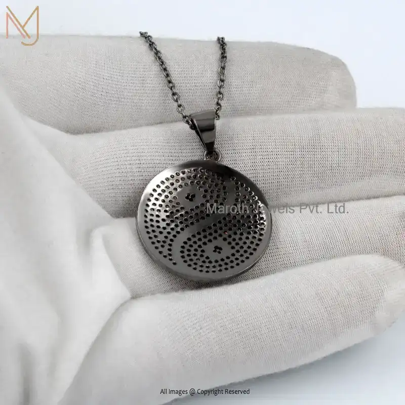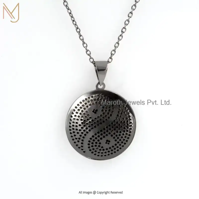 925 Silver Black Rhodium Plated Pave Diamond Yin Yang Symbol Pendant USA