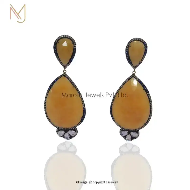 925 Silver Blue Diamond Rainbow Moonstone, Yellow Sapphire Gemstone Earring Jewelry Supplier