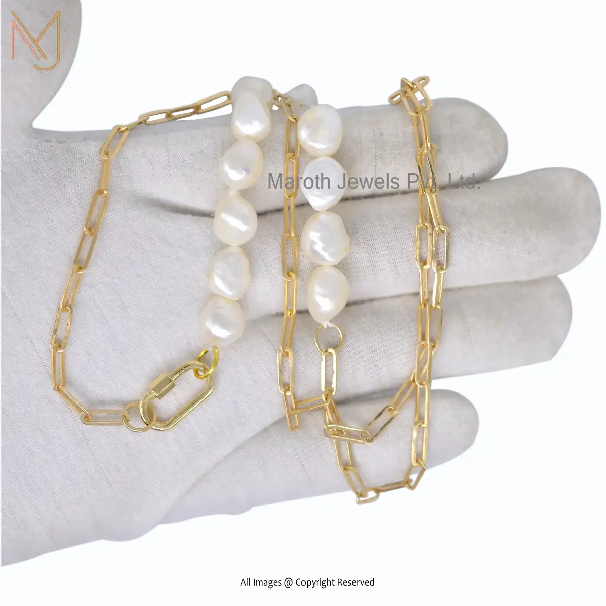 925 Silver Carabiner Lock And Paper Clip Chain Pearl Necklace Manufacturer