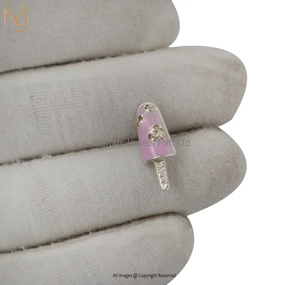 925 Silver Diamond Pink Enamel Ice Cream Bracelet Connector Jewelry Manufacturer