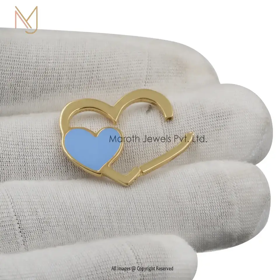 925 Silver Enamel Heart Link Charm Holder Lock Custom Jewelry