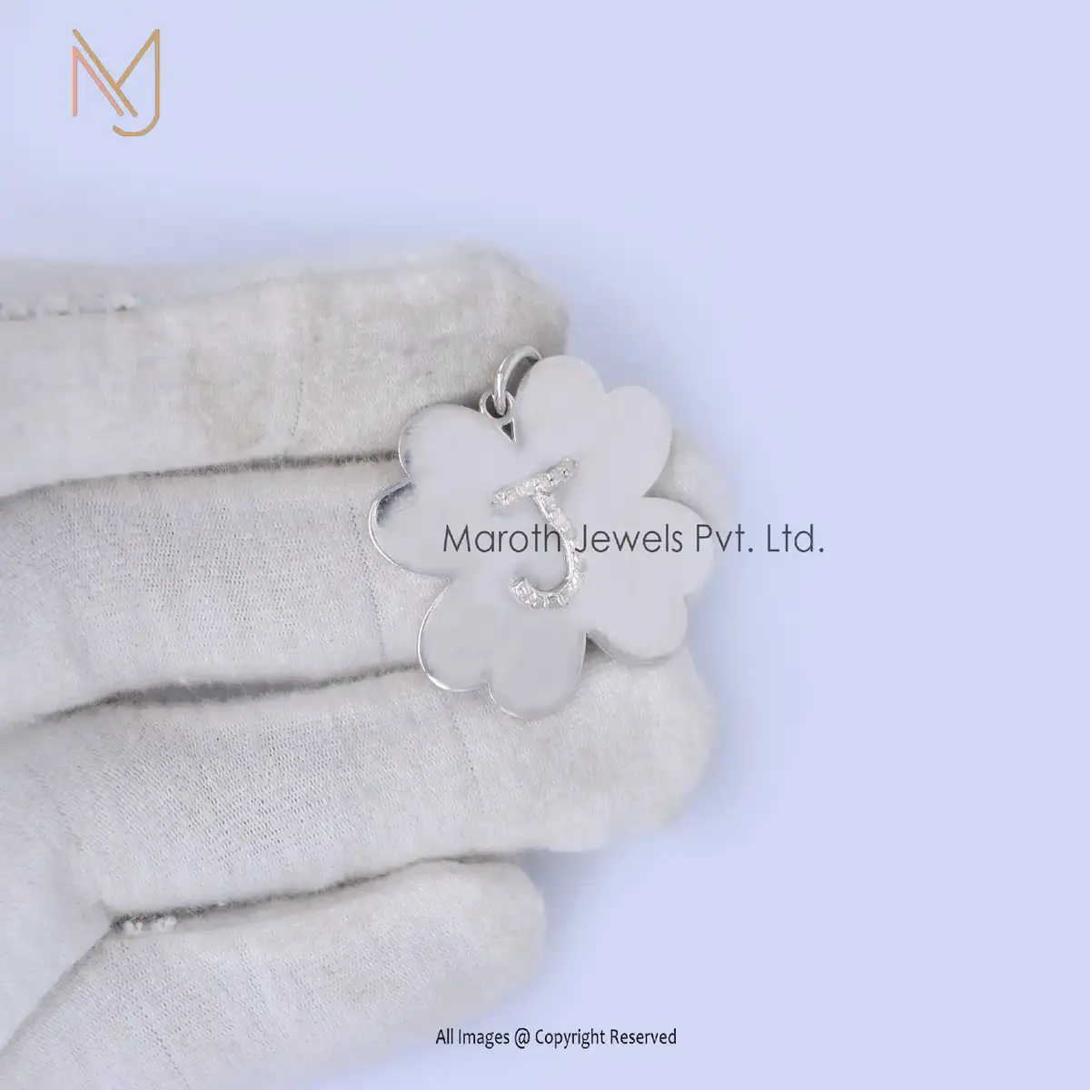925 Silver Gold Pave Diamond Initial M Clover Pendant Custom Jewelry