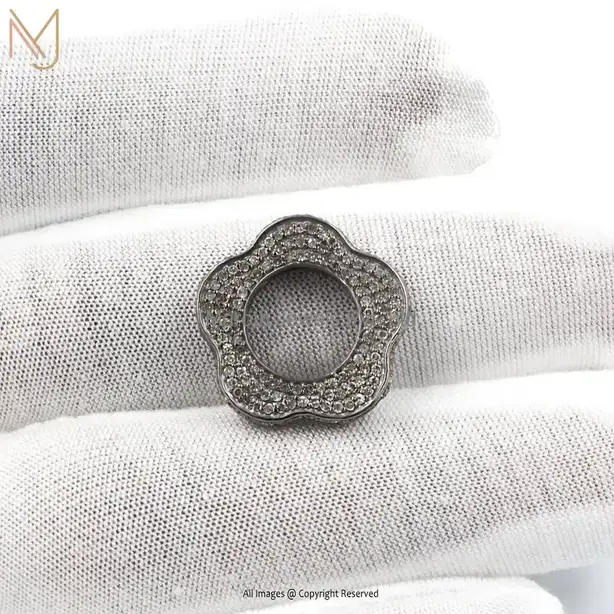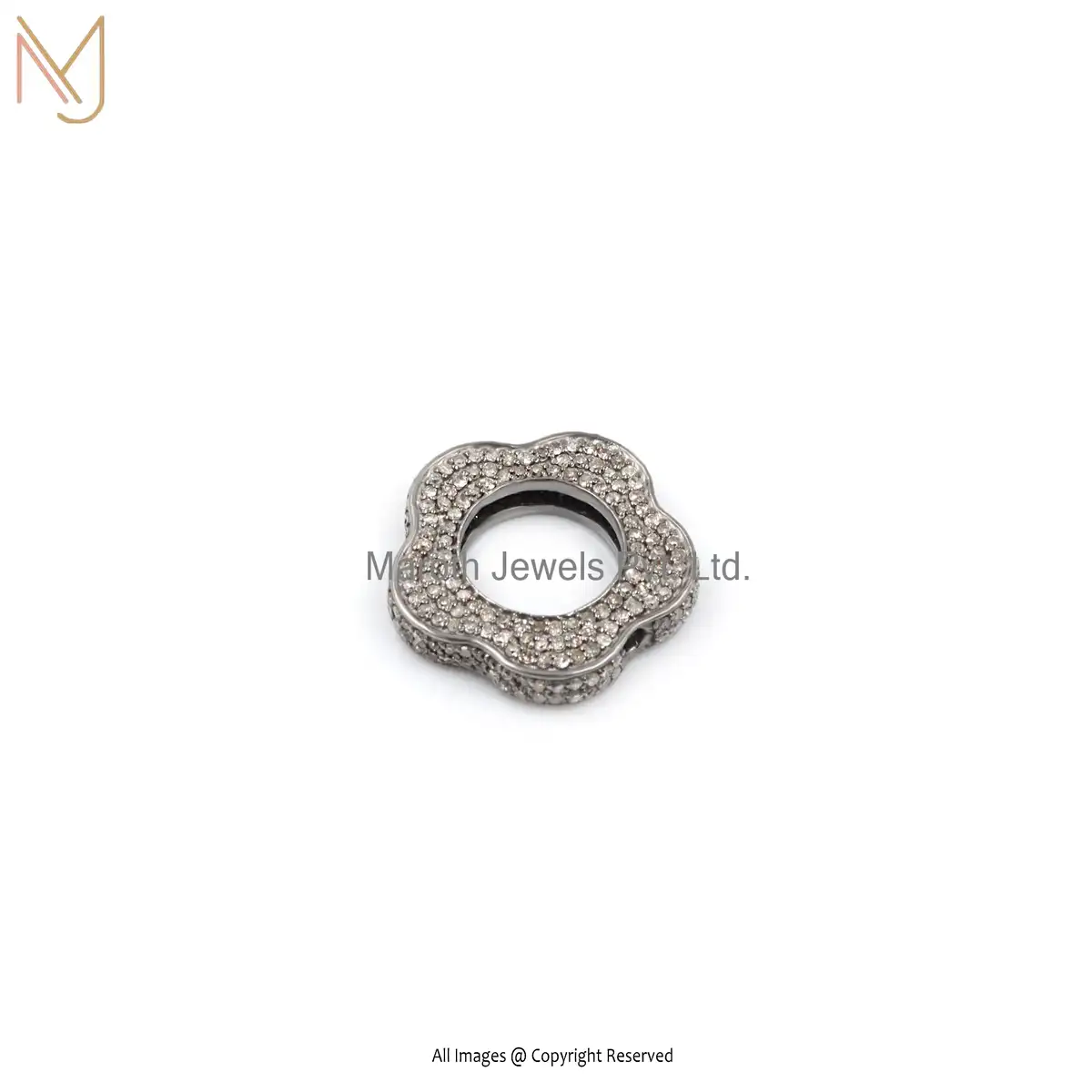 925 Silver Gray Rhodium Plated Pave Diamond Flower Beads Finding Jewelry USA