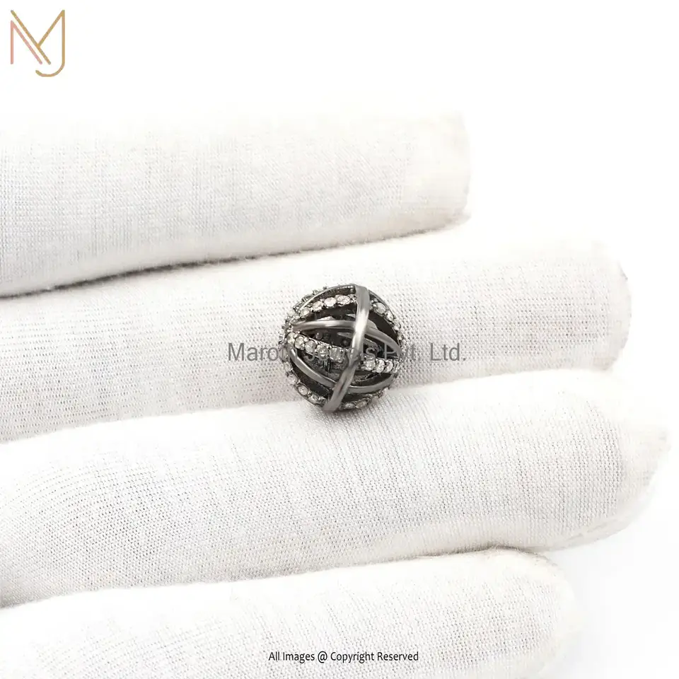 925 Silver Gray Rhodium Plated Pave Diamond Round Beads Finding Jewelry Supplier