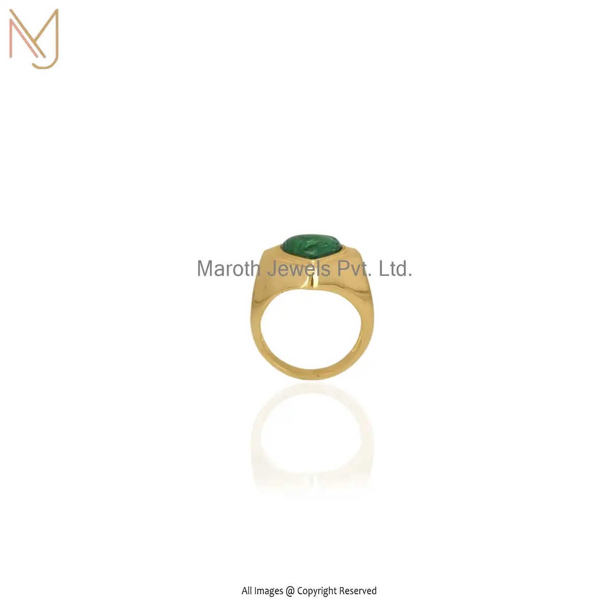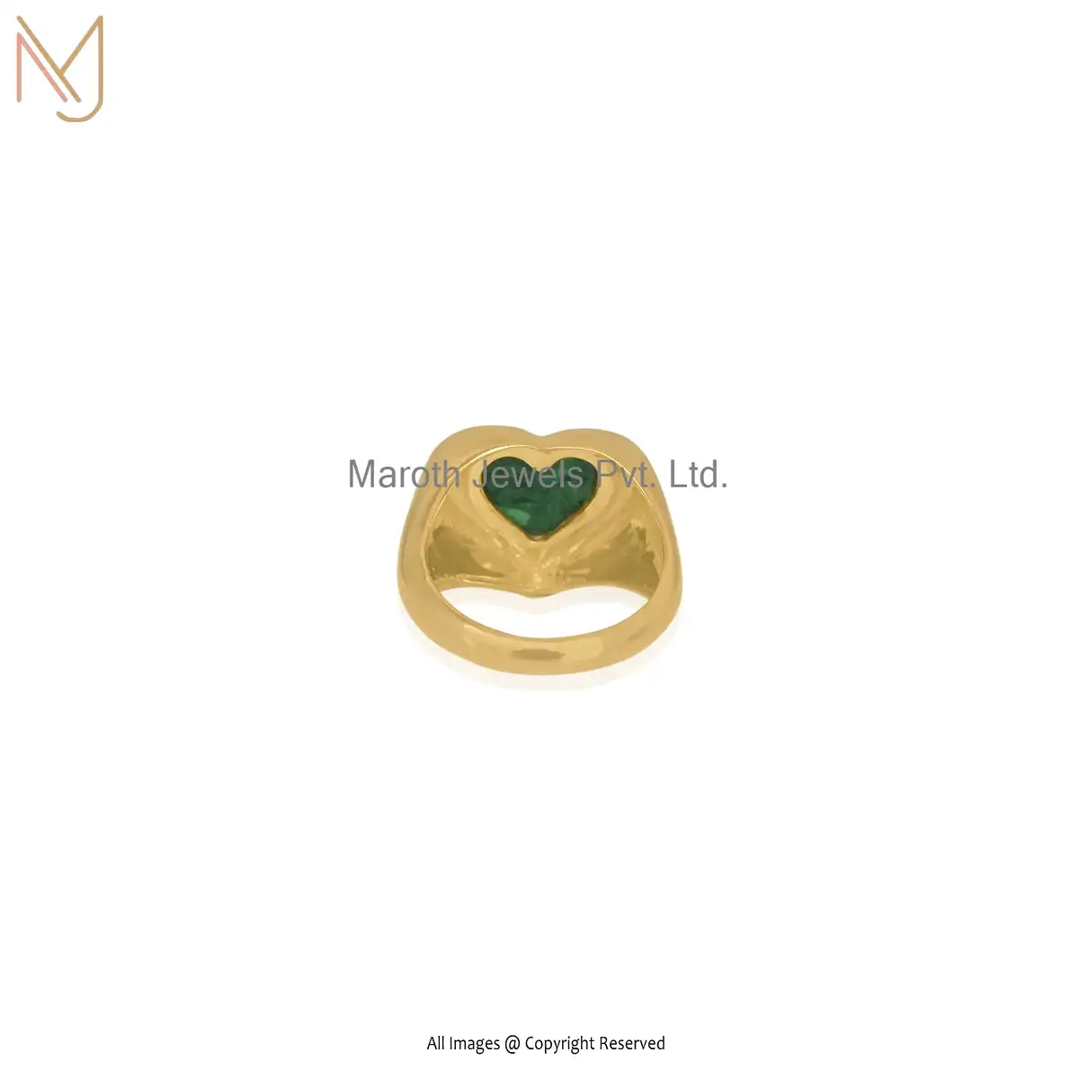 925 Silver Yellow Gold Plated Malachite Heart Signet Ring Custom Jewelry