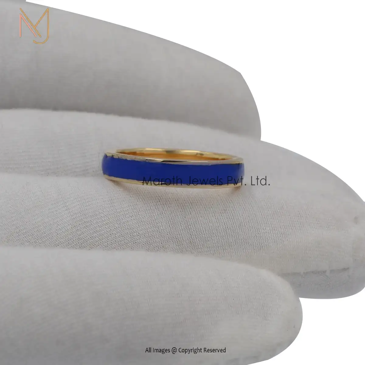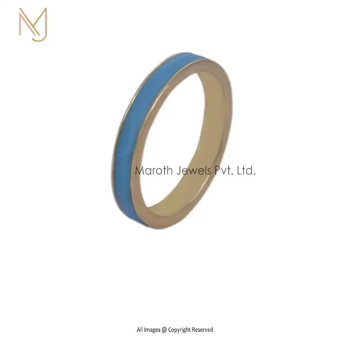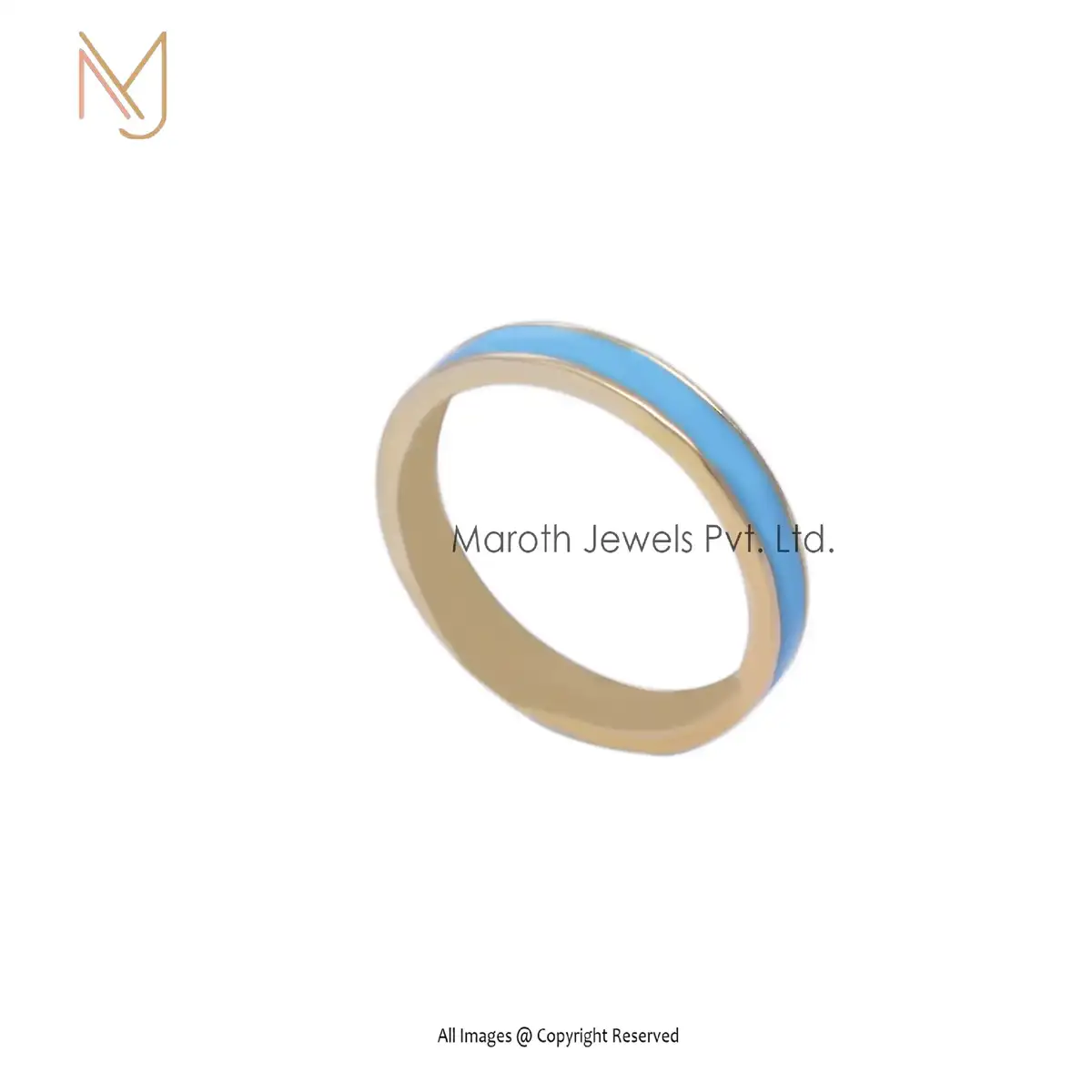 925 Silver Natural Silver Bright Blue Enamel Bands Ring Manufacturer