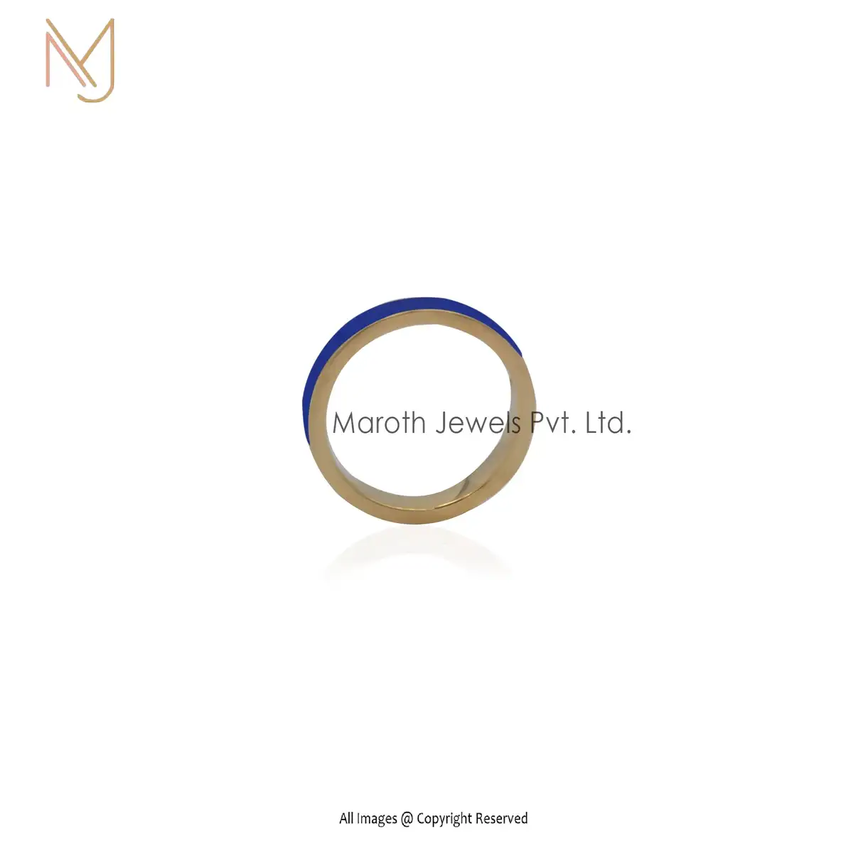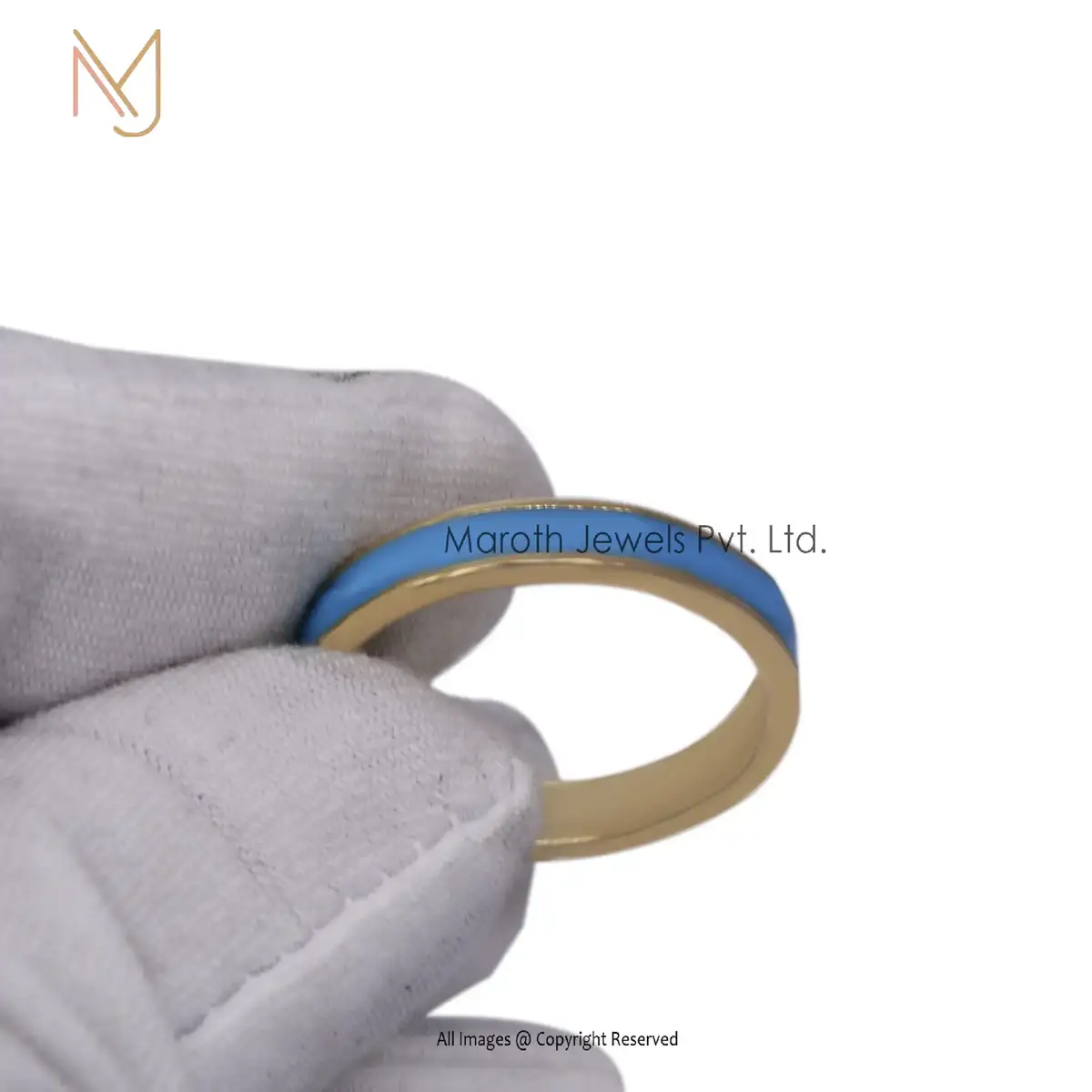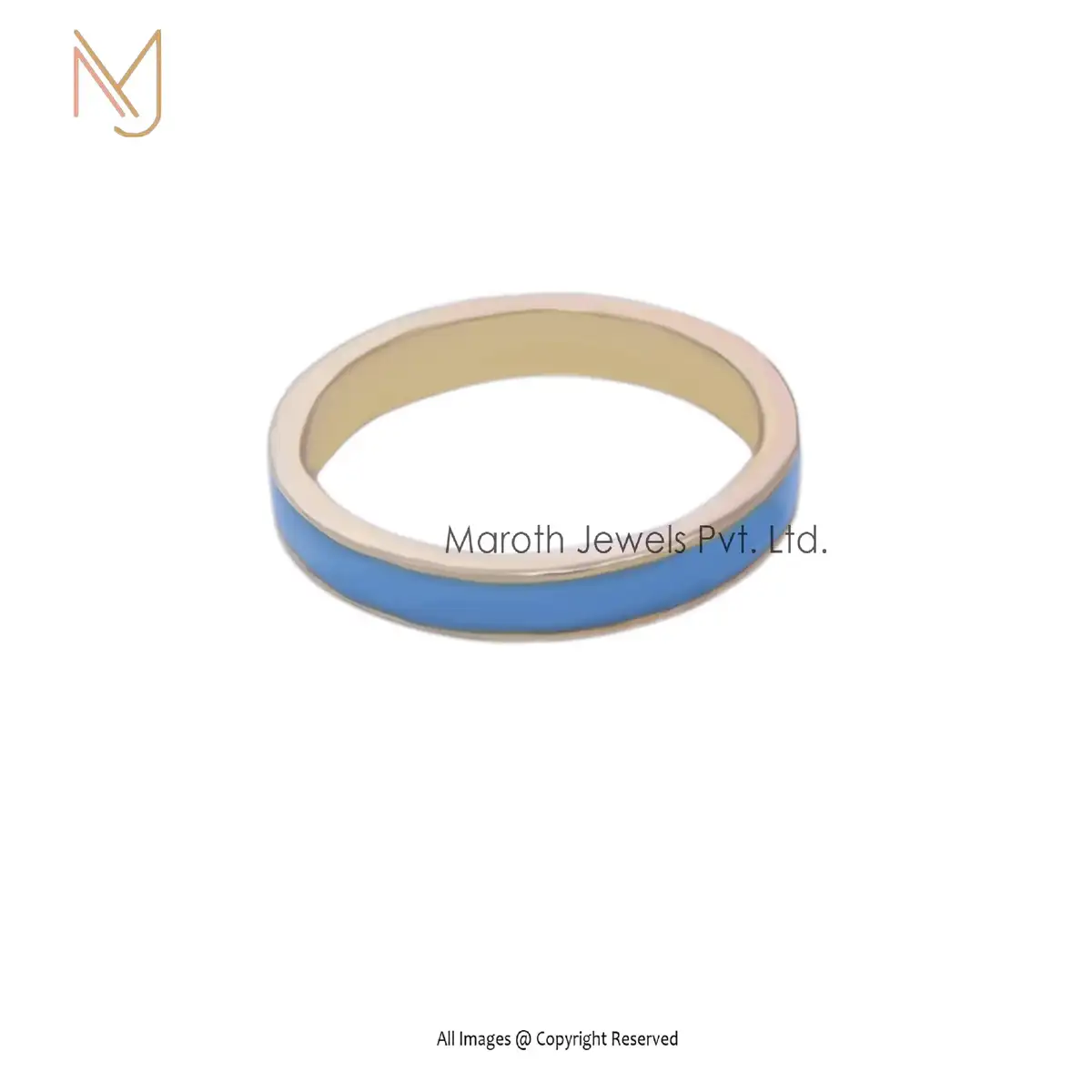 925 Silver Natural Silver Bright Blue Enamel Bands Ring Manufacturer