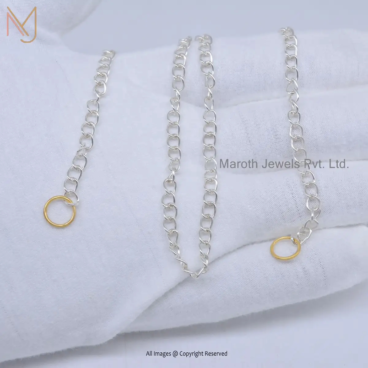 925 Silver Natural Silver Curb Chain With Yellow Gold Jump Ring Necklace Jewelry Supplier