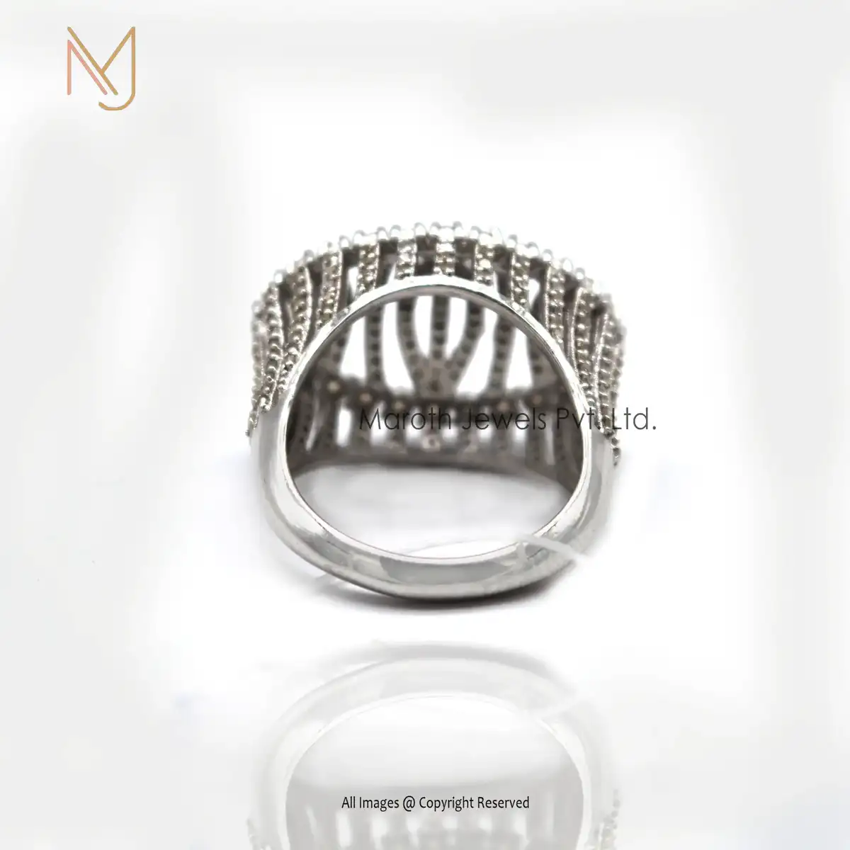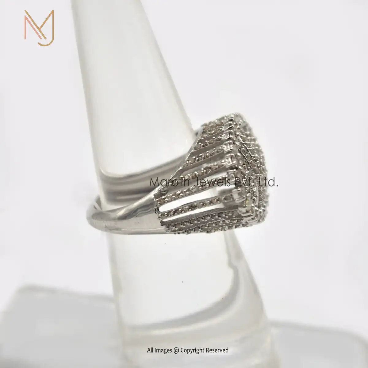 925 Silver Natural Silver Pave Diamond Ring Jewelry Manufacturer