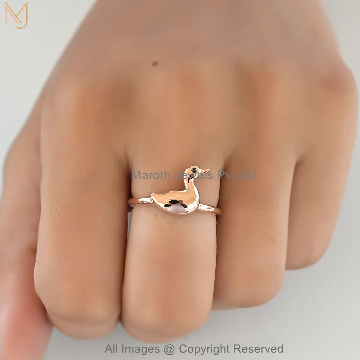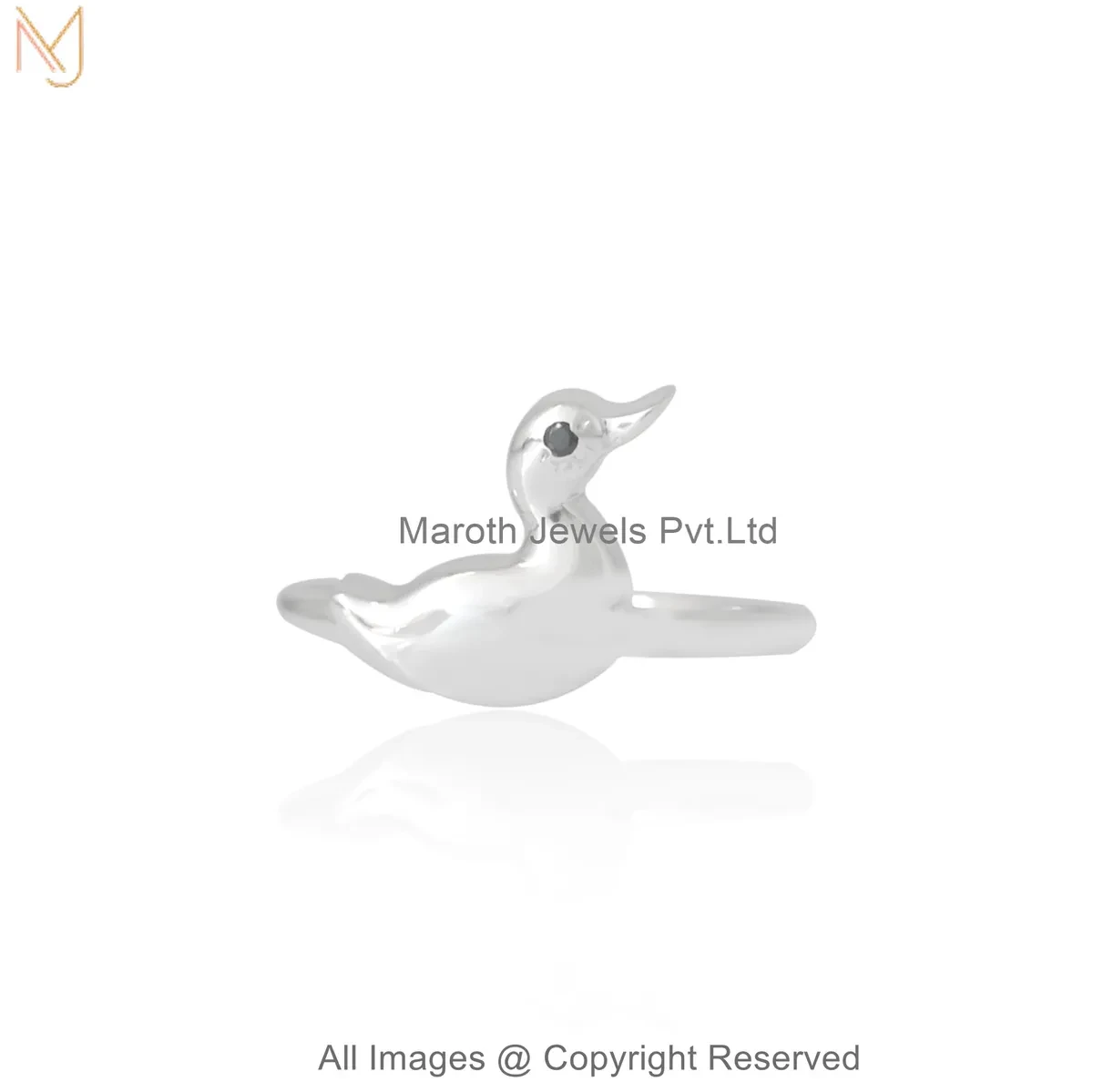 925 Silver Natural Silver Plated Black Cubic Zircon Cute Duck Ring Jewelry Supplier