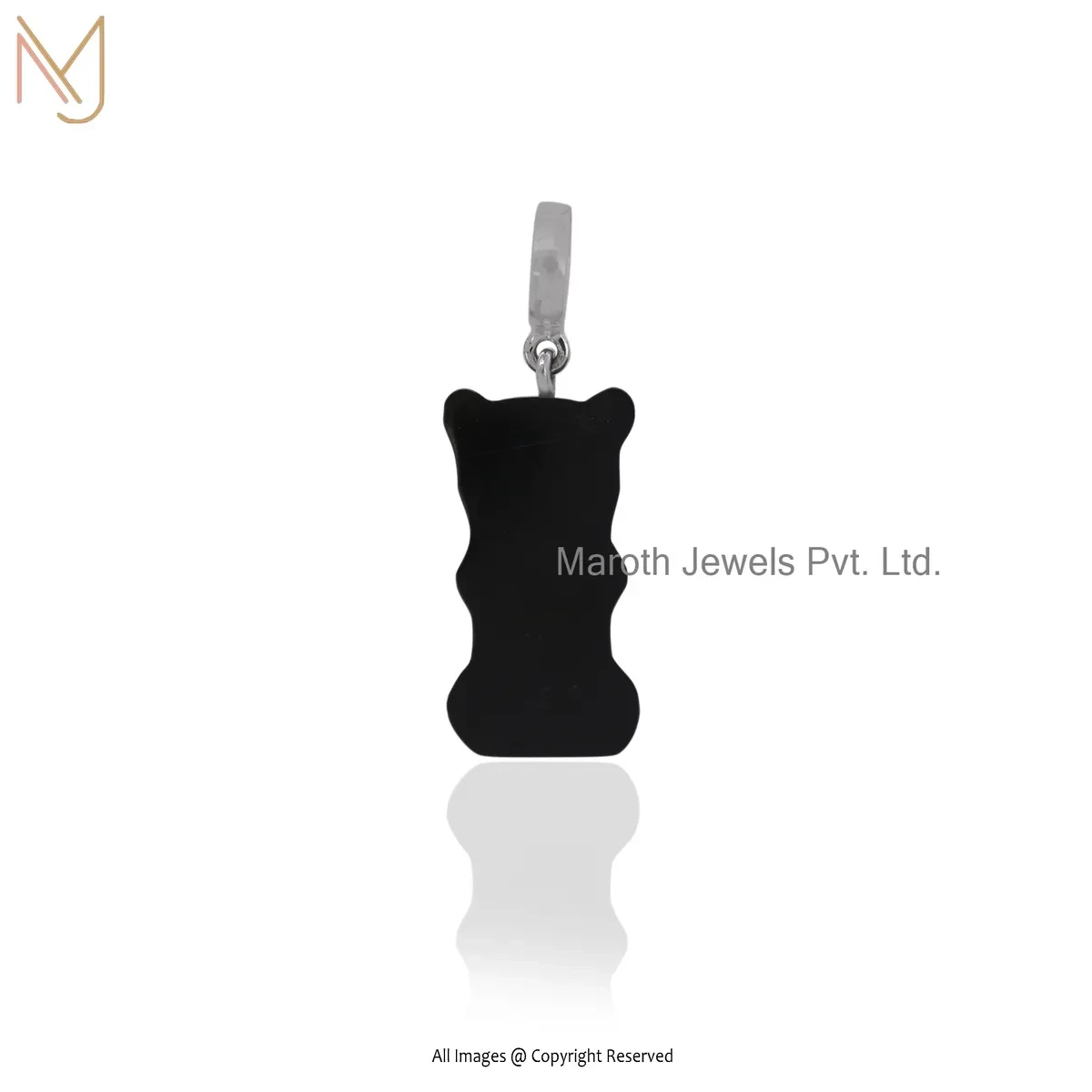 925 Silver Natural Silver Plated Black Onyx Teddy Bear Pendant Jewelry Supplier