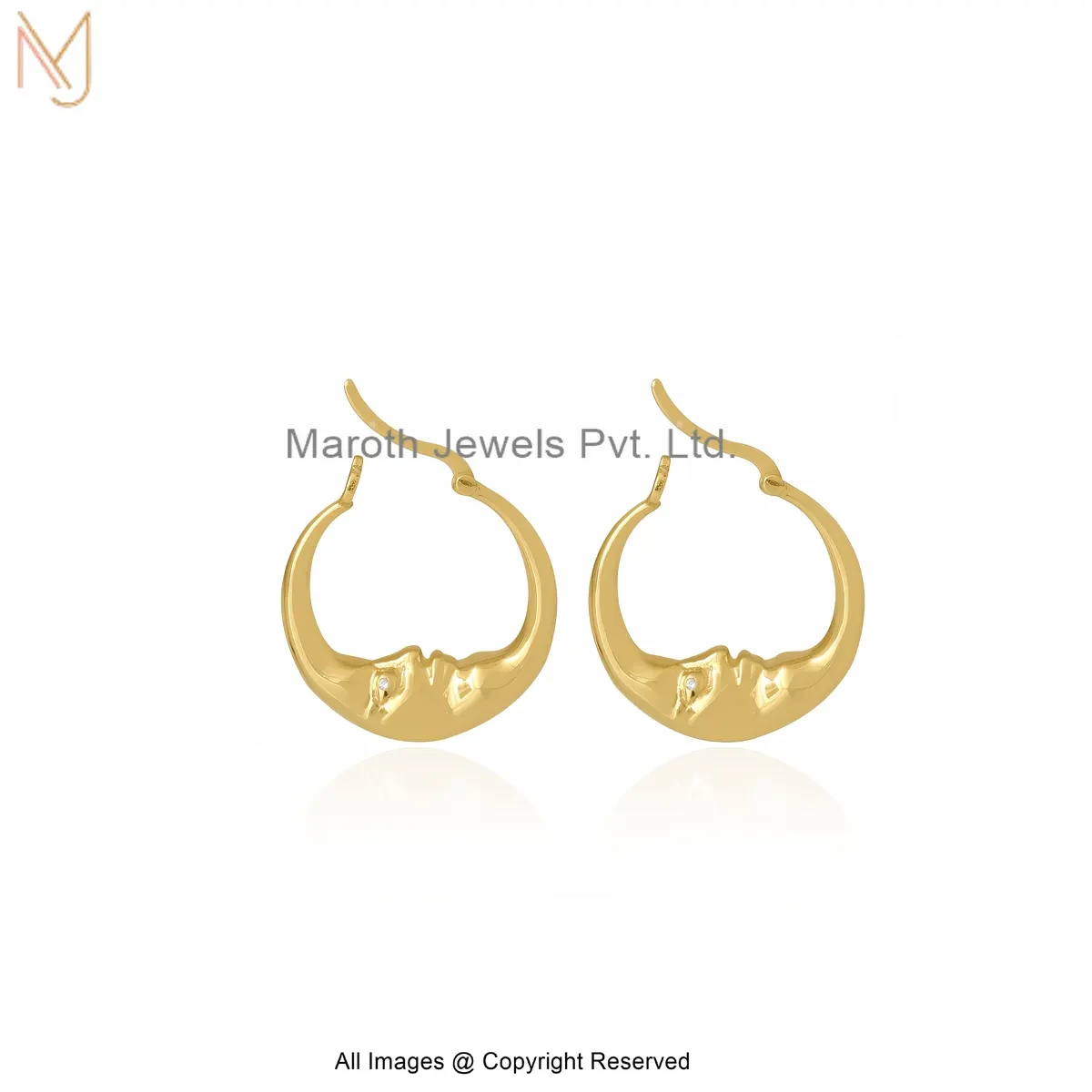 925 Silver Natural Silver Plated Crescent Moon Face Hoop Earring Manufacturer