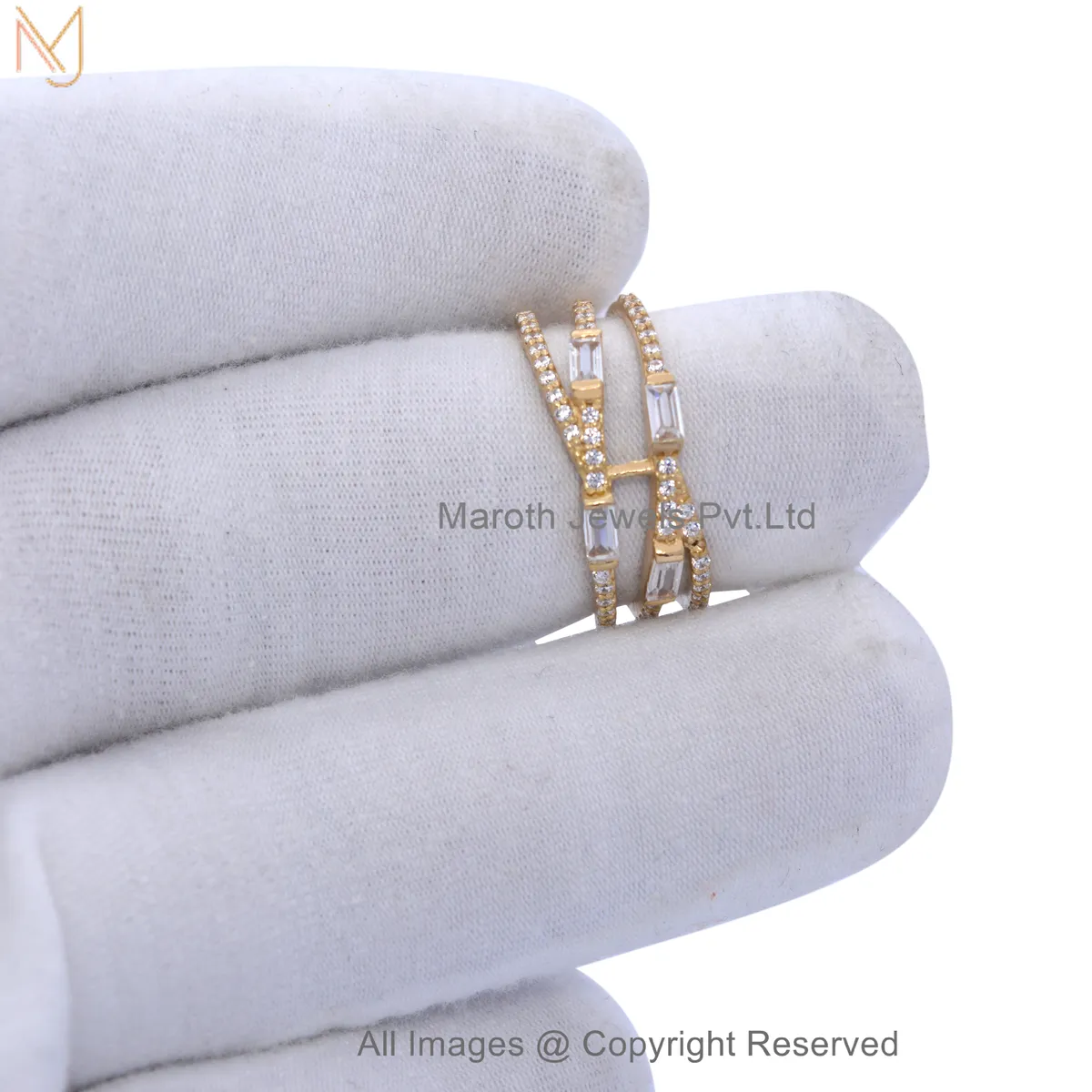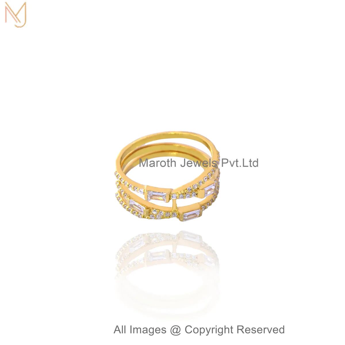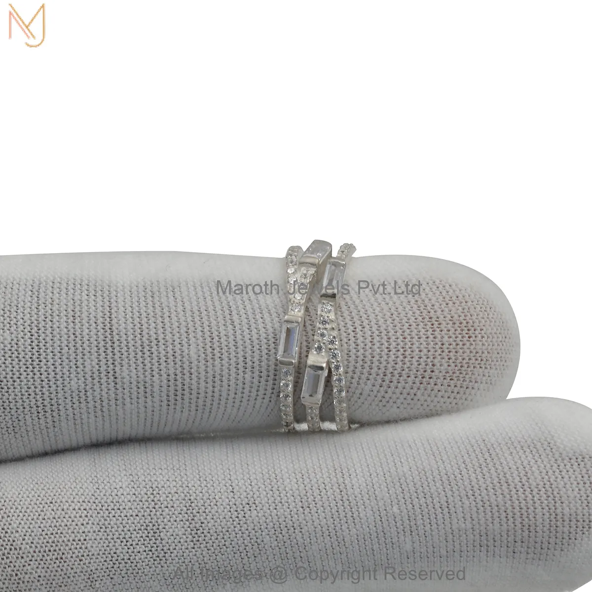 925 Silver Natural Silver Plated Cubic Zircon Baguette Band Ring Manufacturer