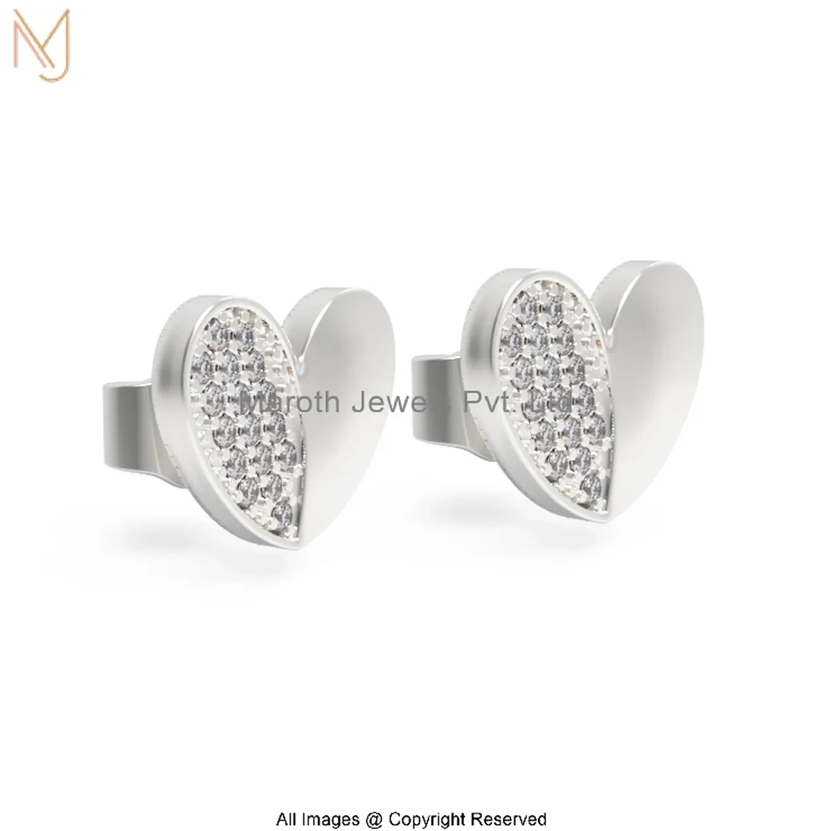 925 Silver Natural Silver Plated Cubic Zircon Diamond Heart Stud Earring Manufacturer