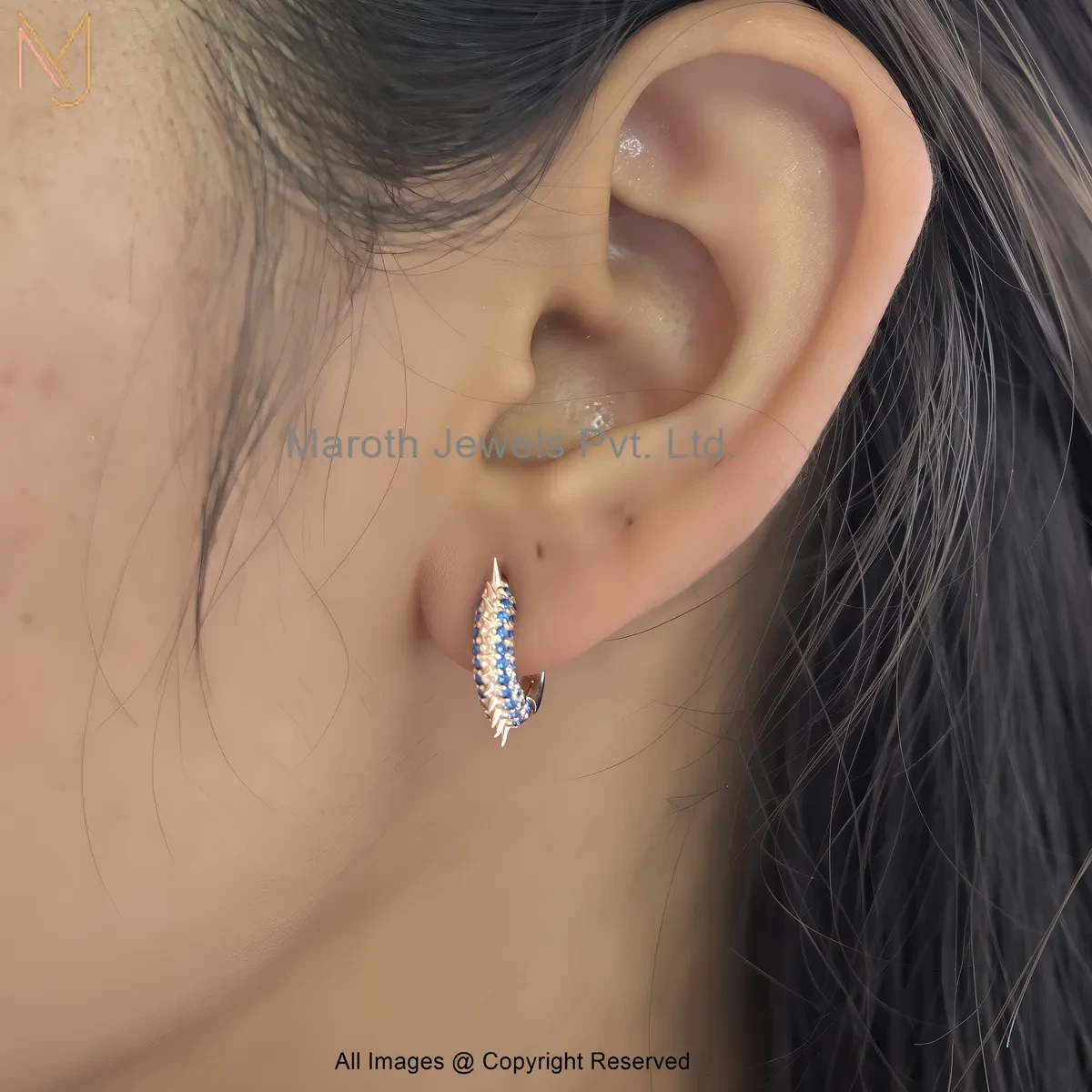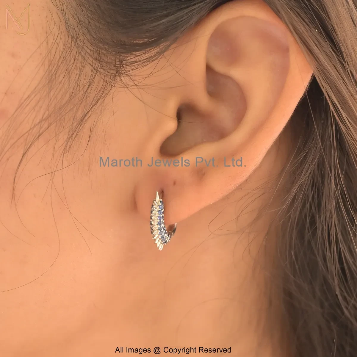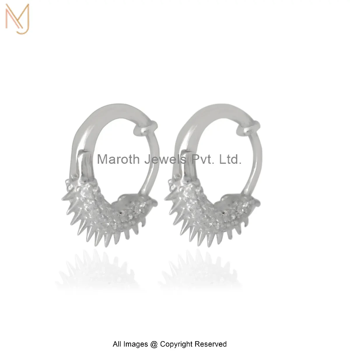 925 Silver Natural Silver Plated Cubic Zircon Gemstone Spike Huggies Earring Manufacturer