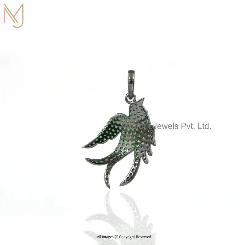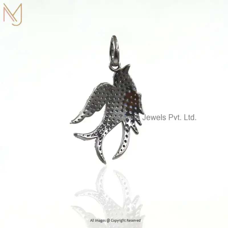 925 Silver Natural Silver Plated Cubic Zircon & Turquoise Swallow Bird Pendant USA