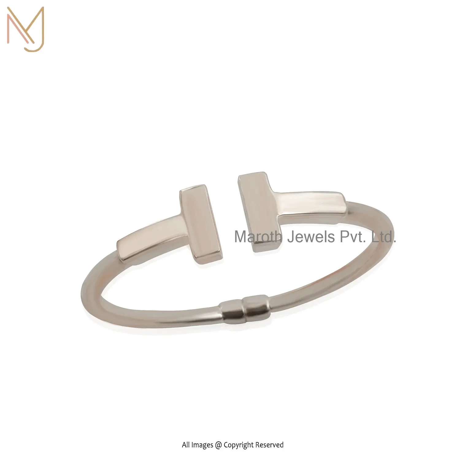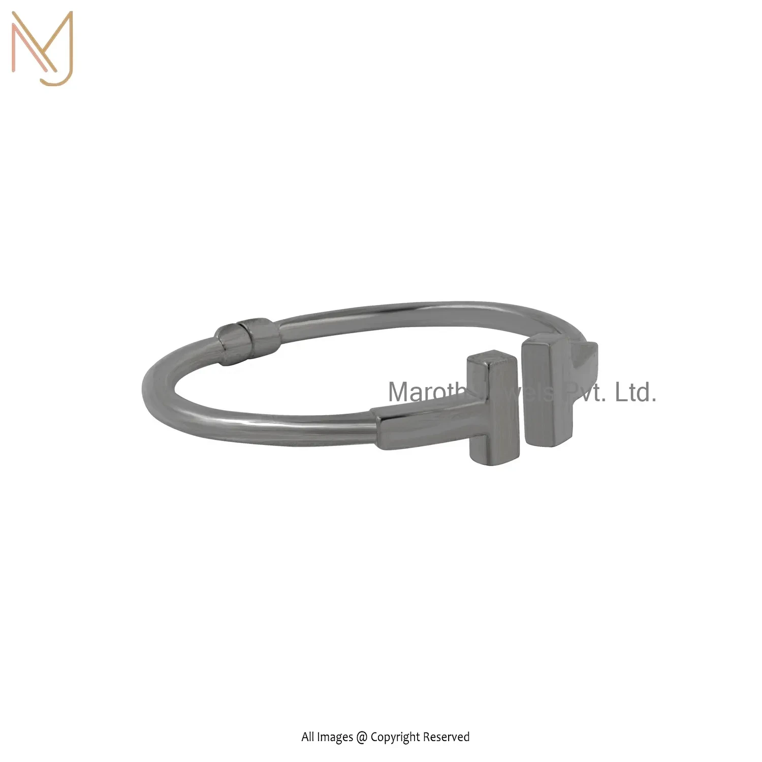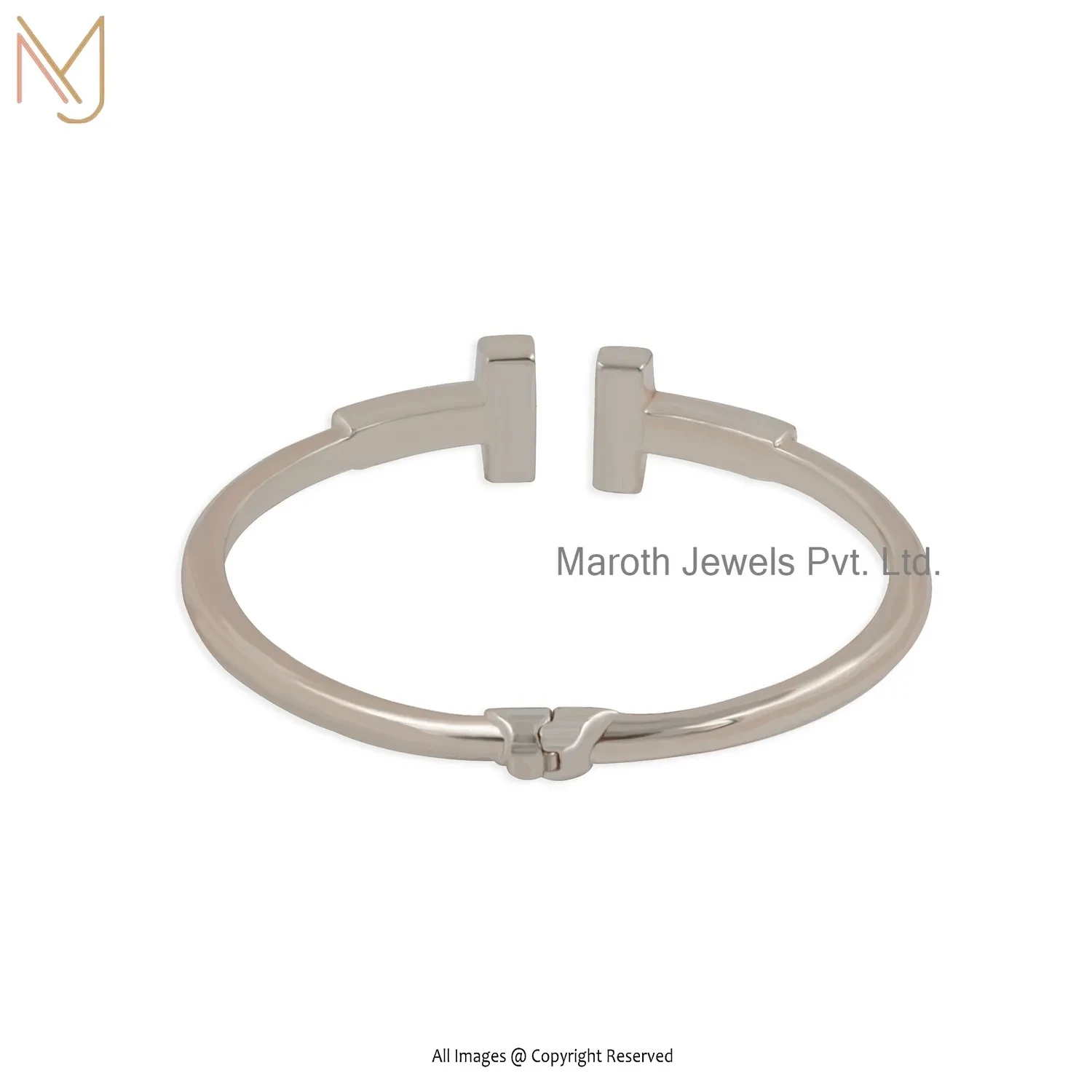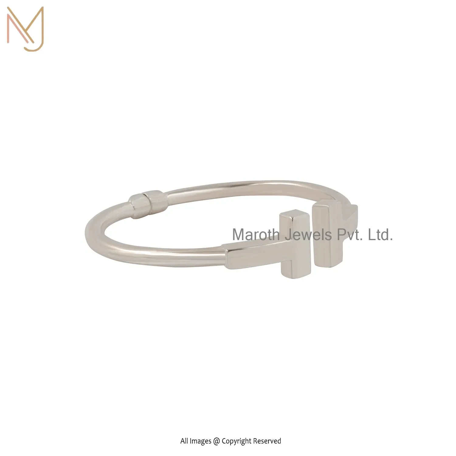 925 Silver Natural Silver Plated Cuff T Bangle Custom Jewelry